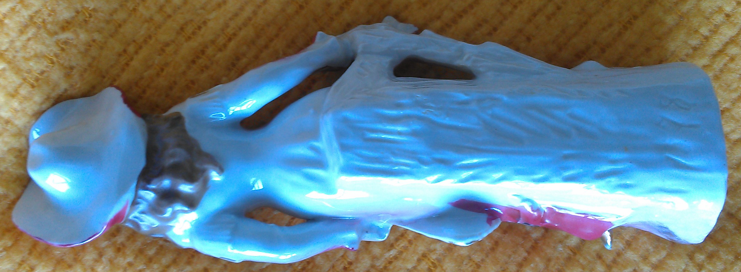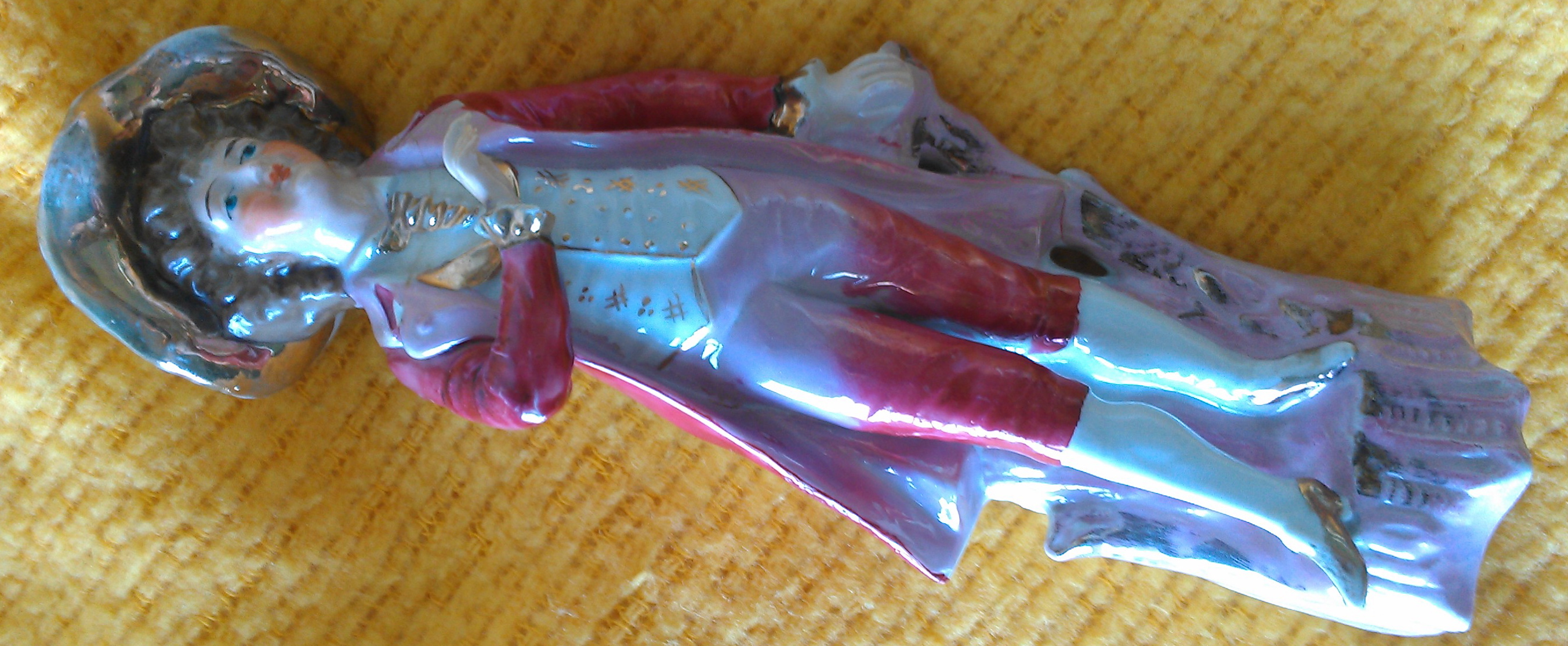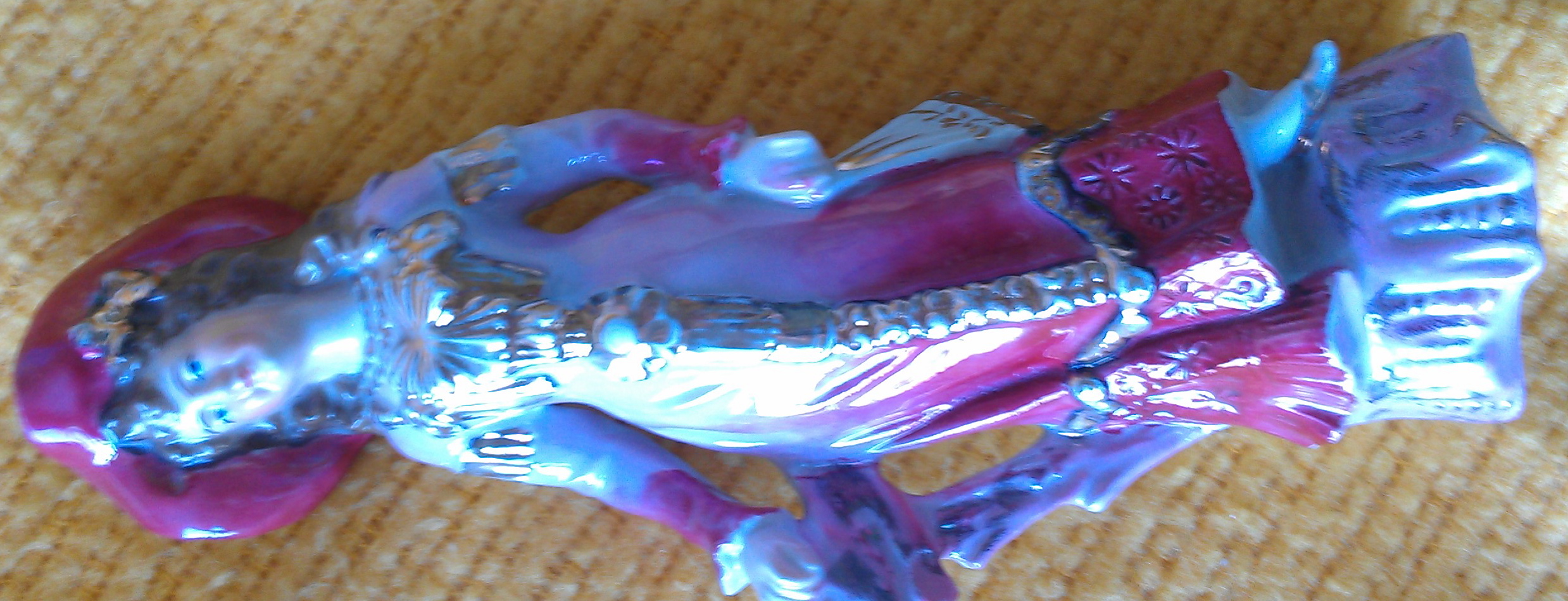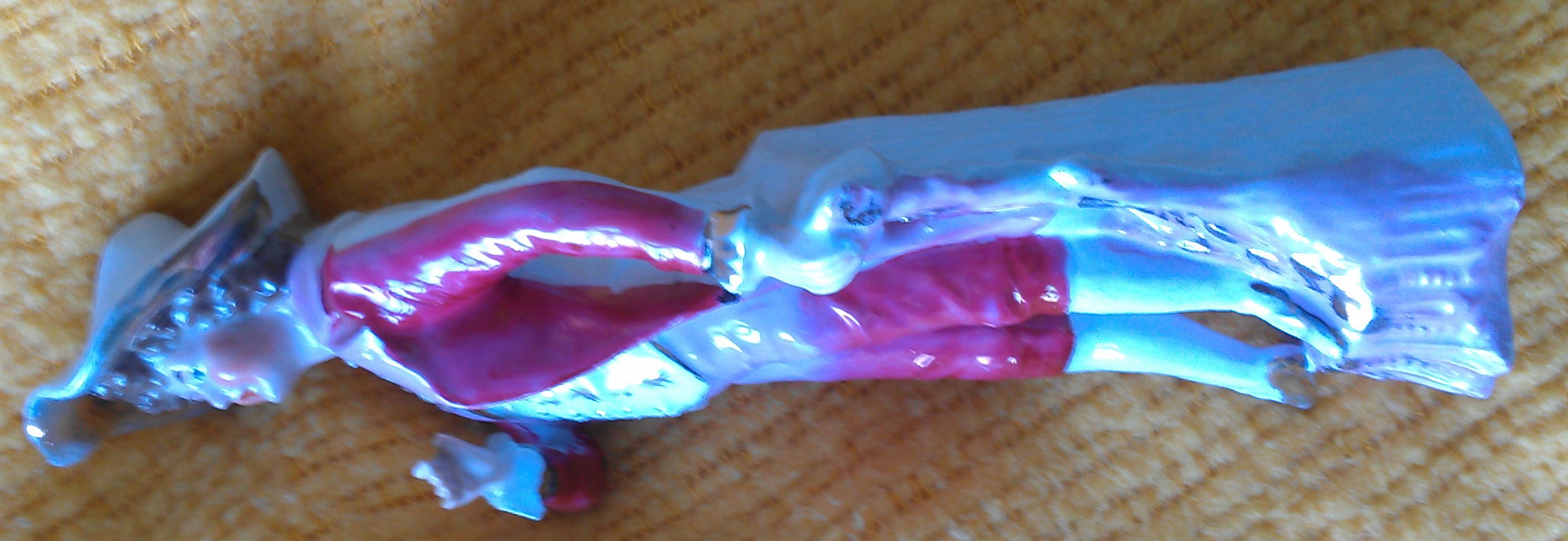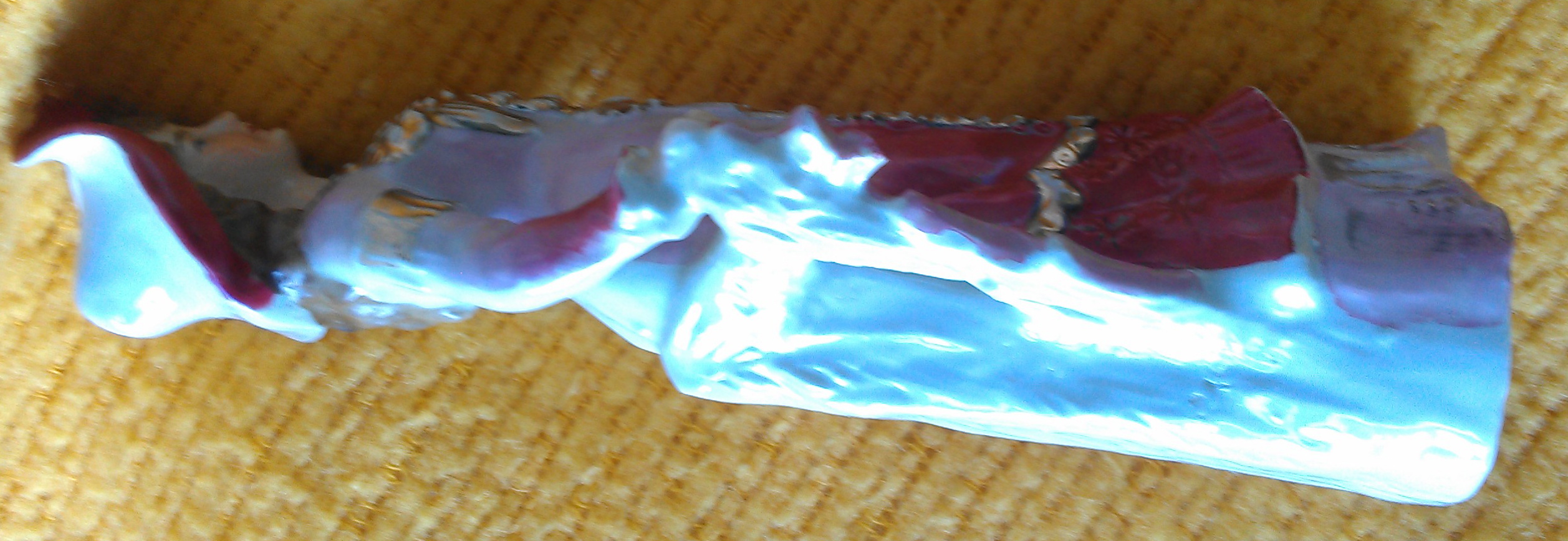 These figurines have been in my family for 6+ generations. They originated in England and both have the number/date 1578 on the back of them. They are both hollow and are trimmed out in 18 carat gold. Their eyes are a bright blue and I have no idea what exactly you need more of. I took pictures and am enclosing them.