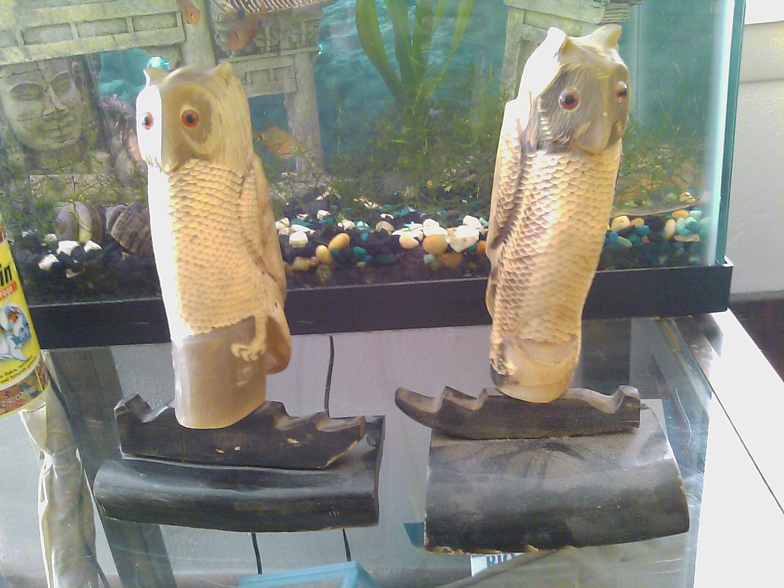 2 Hand carved Ivory Owl Bookends