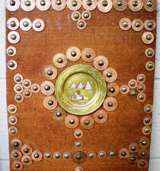 They are made from a copper mesh background, have 3 bronze, copper & silver Egyptian platelets and 200 + East African coins on each. A total of over 400 coins dating from 1924 to 1942. These gorgeous plaques were made in 1942...and are in mint condition.