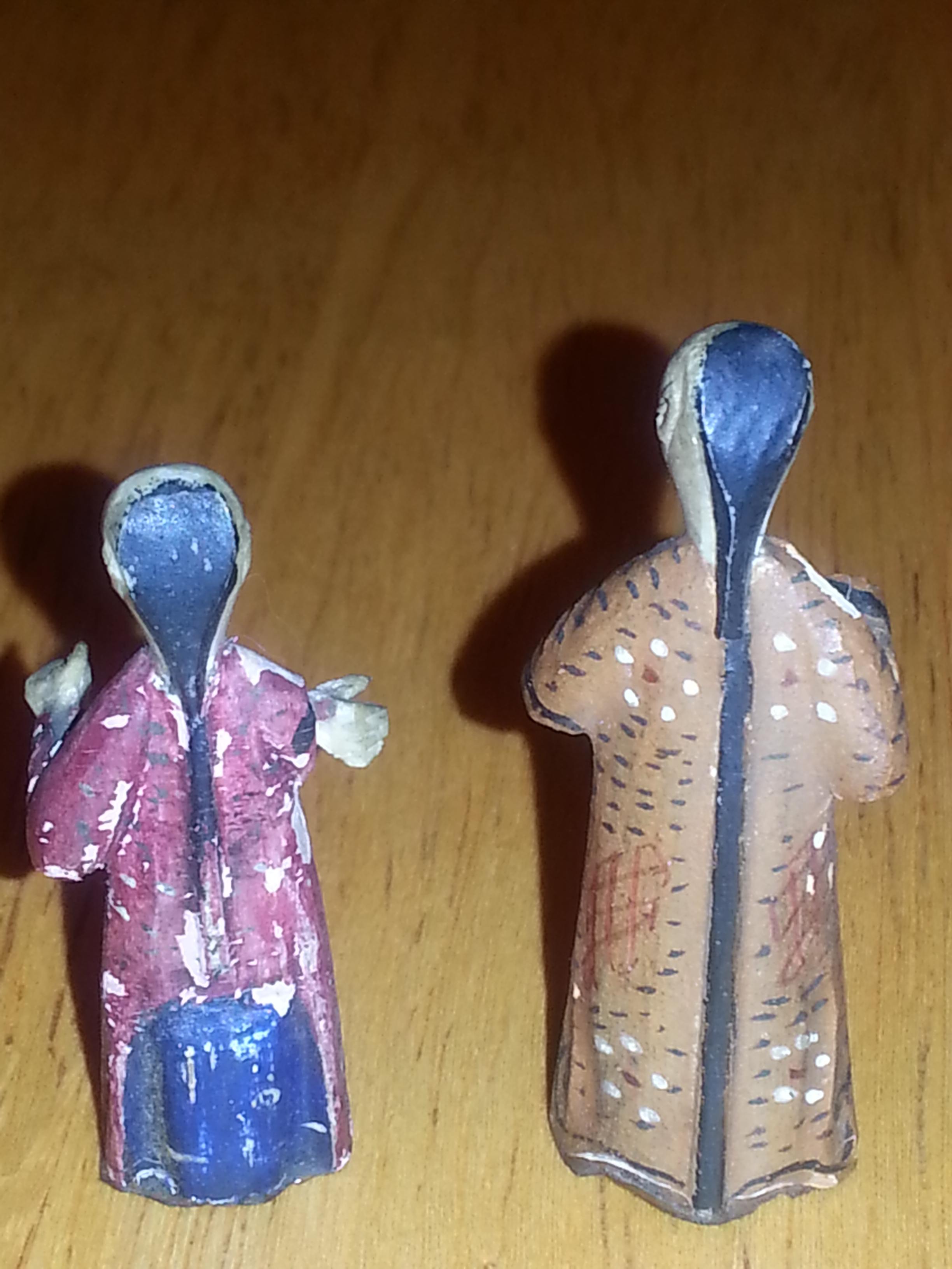 2 inch wood carved Japanese figures. Maybe 1800's. Have 6 in total