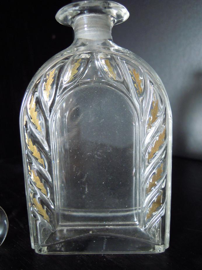 2 old beautifull bottles. First one has gold foil on the frond and a pointy stopper, good condition. Some small flea bites on the stopper and some wear on the gold foil.
