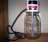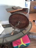 antique butter churn,no date on it,in excellent condition,2 qt bottle,wooden paddles,iron mechanism on top with wooden handle and vent hole.