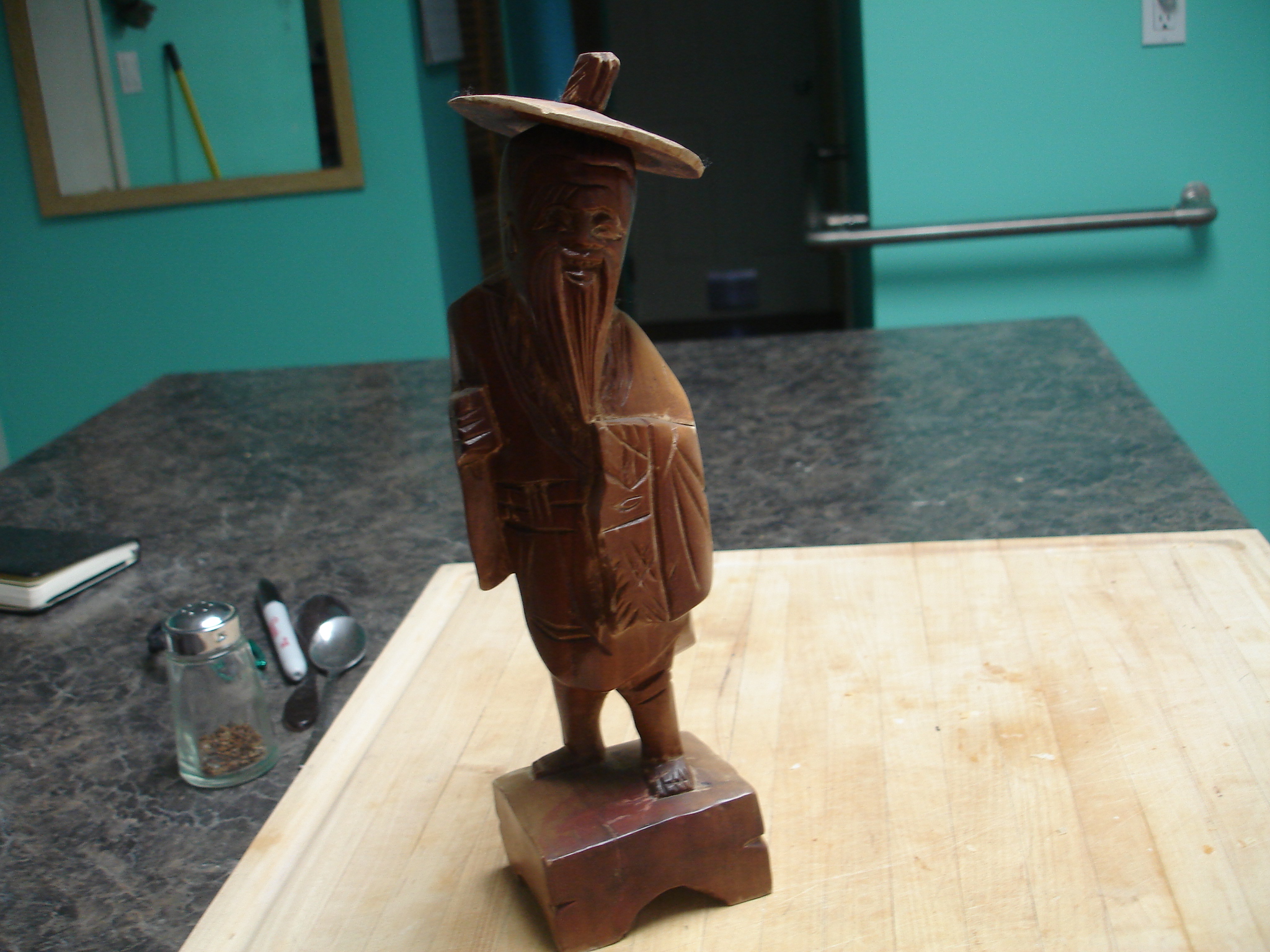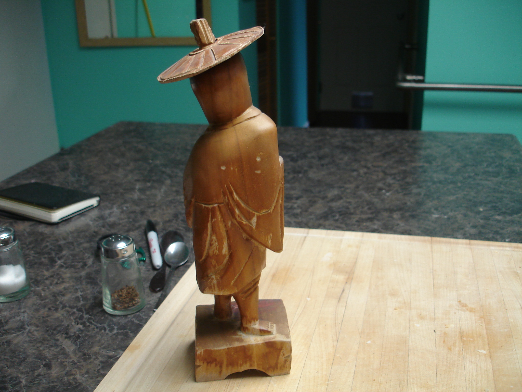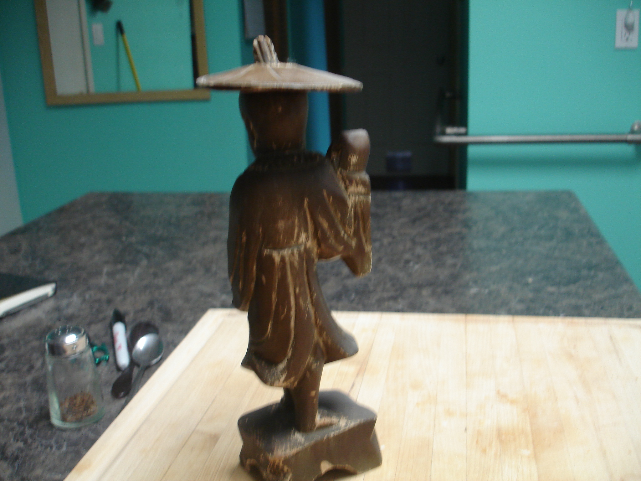 These two asian men are hand carved in wood. I don't know much about them sorry.
