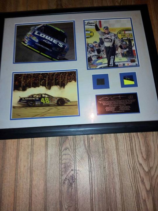 2004 #48 Jimmy Johnson collector plaque with piece of car and tire authenticty number printed on back