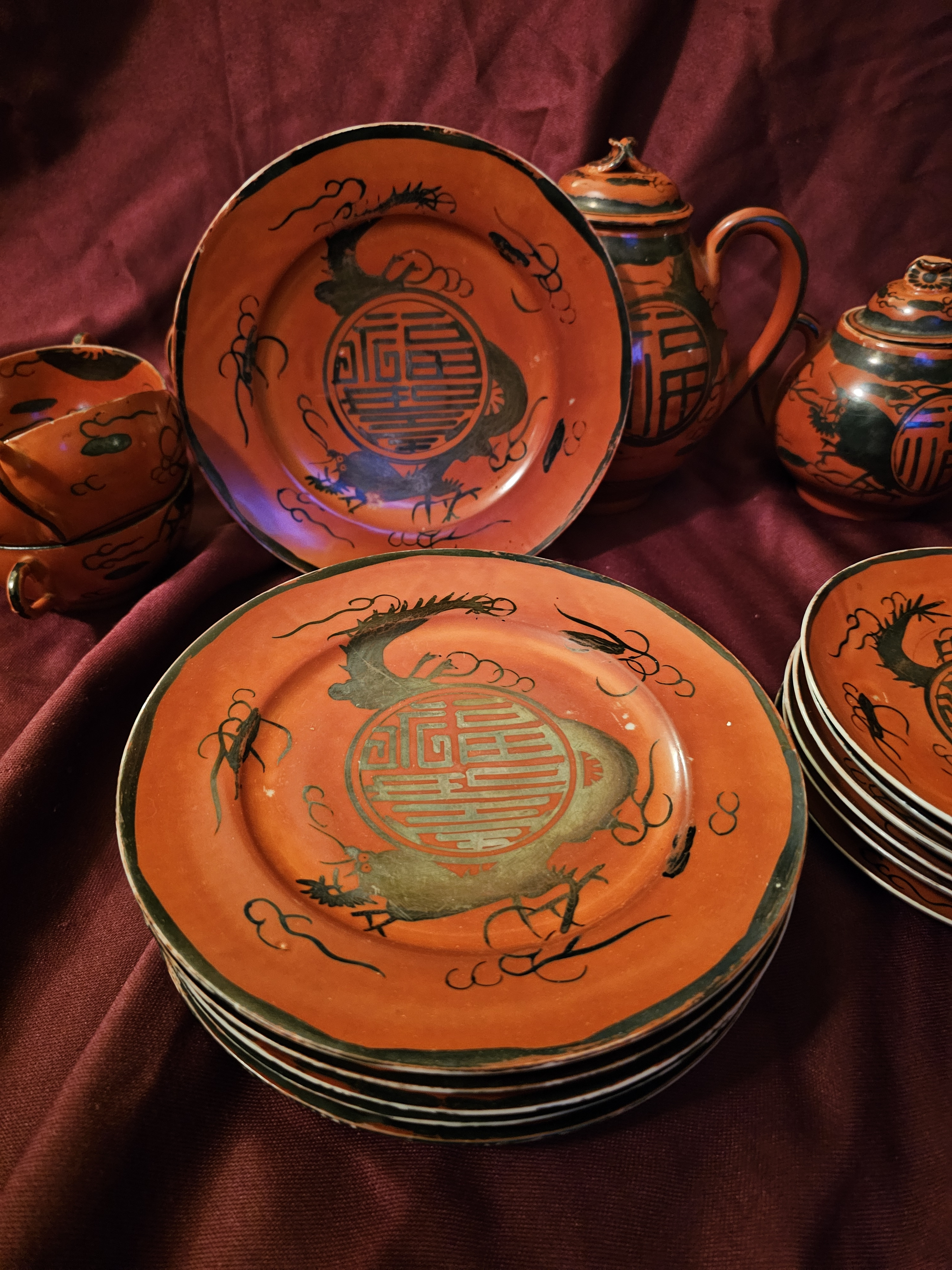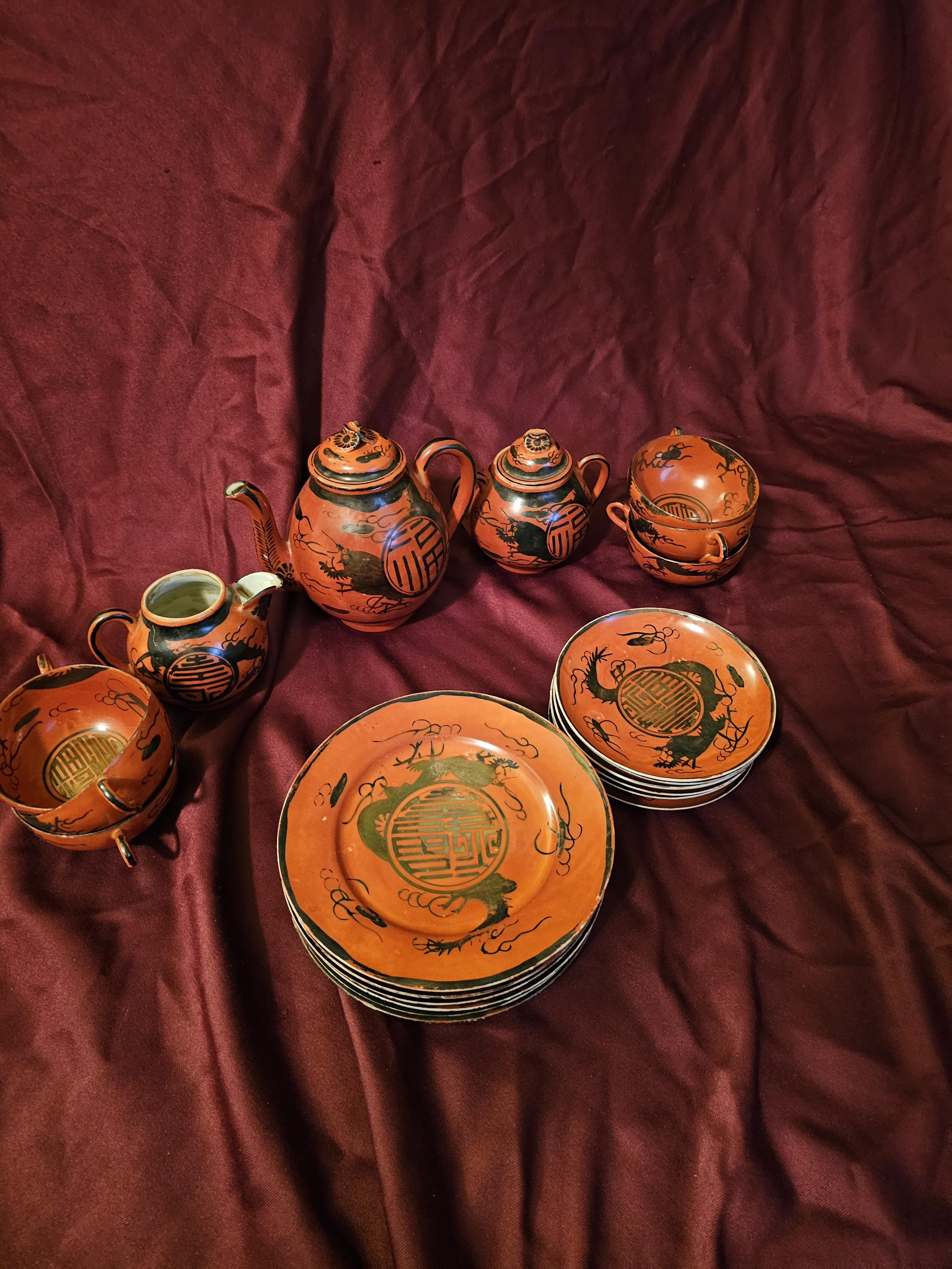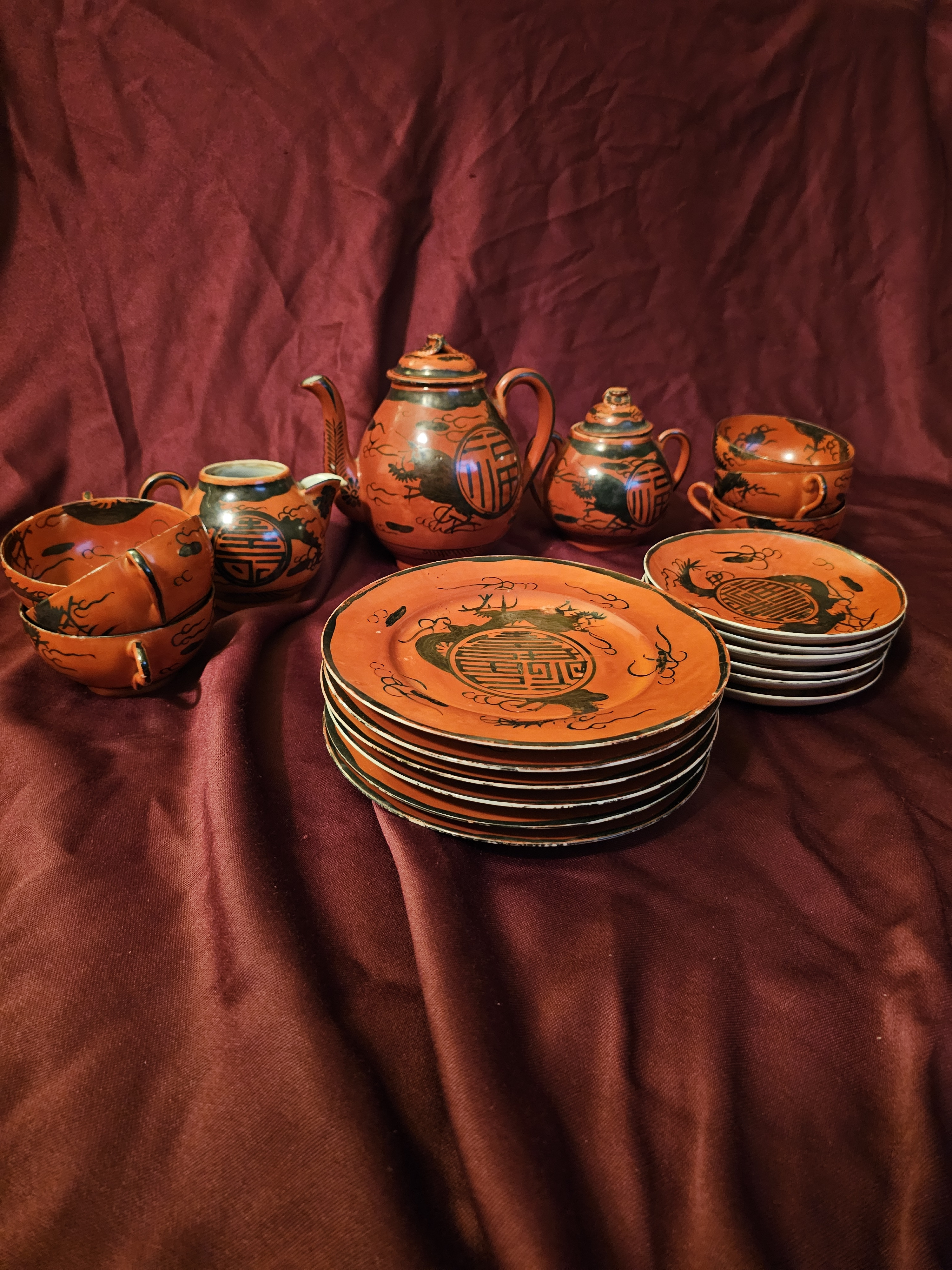 Japanese red dragon tea set.