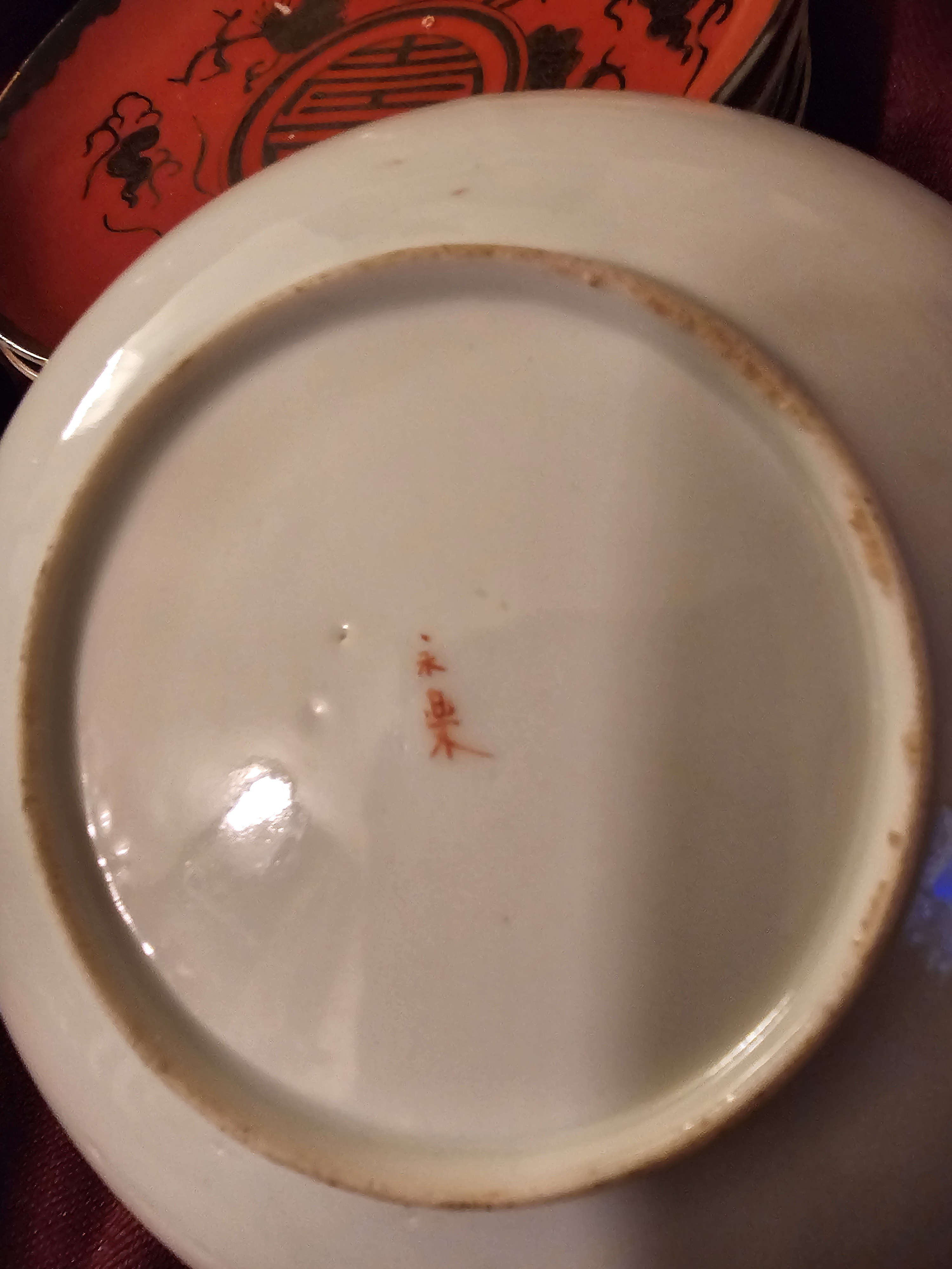 Japanese porcelain tea sets with dragon motifs were particularly popular during the mid-20th century, often crafted for export to Western markets. The red characters on the underside suggest it was produced by a specific artisan or workshop, potentially adding to its uniqueness and appeal.