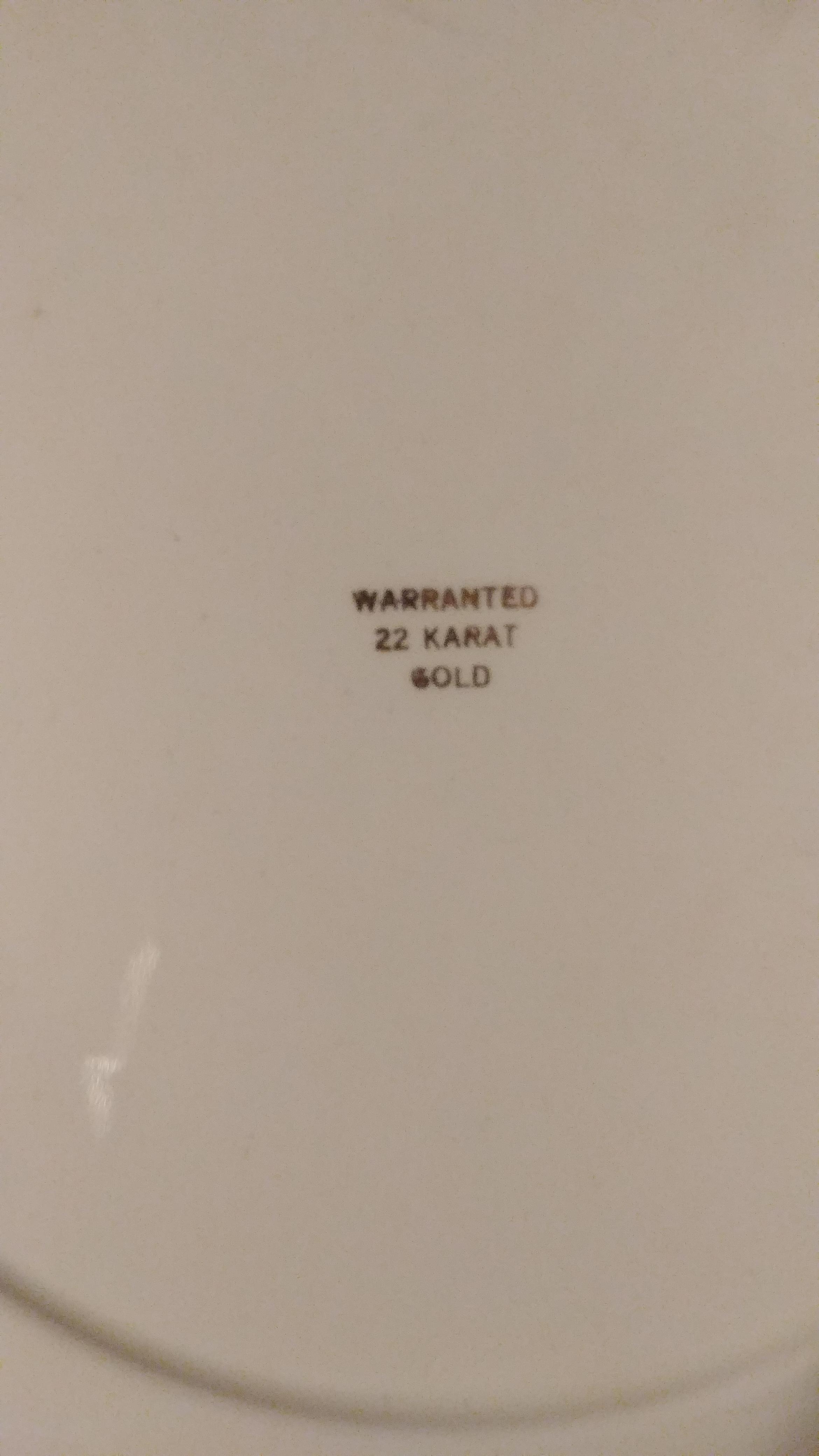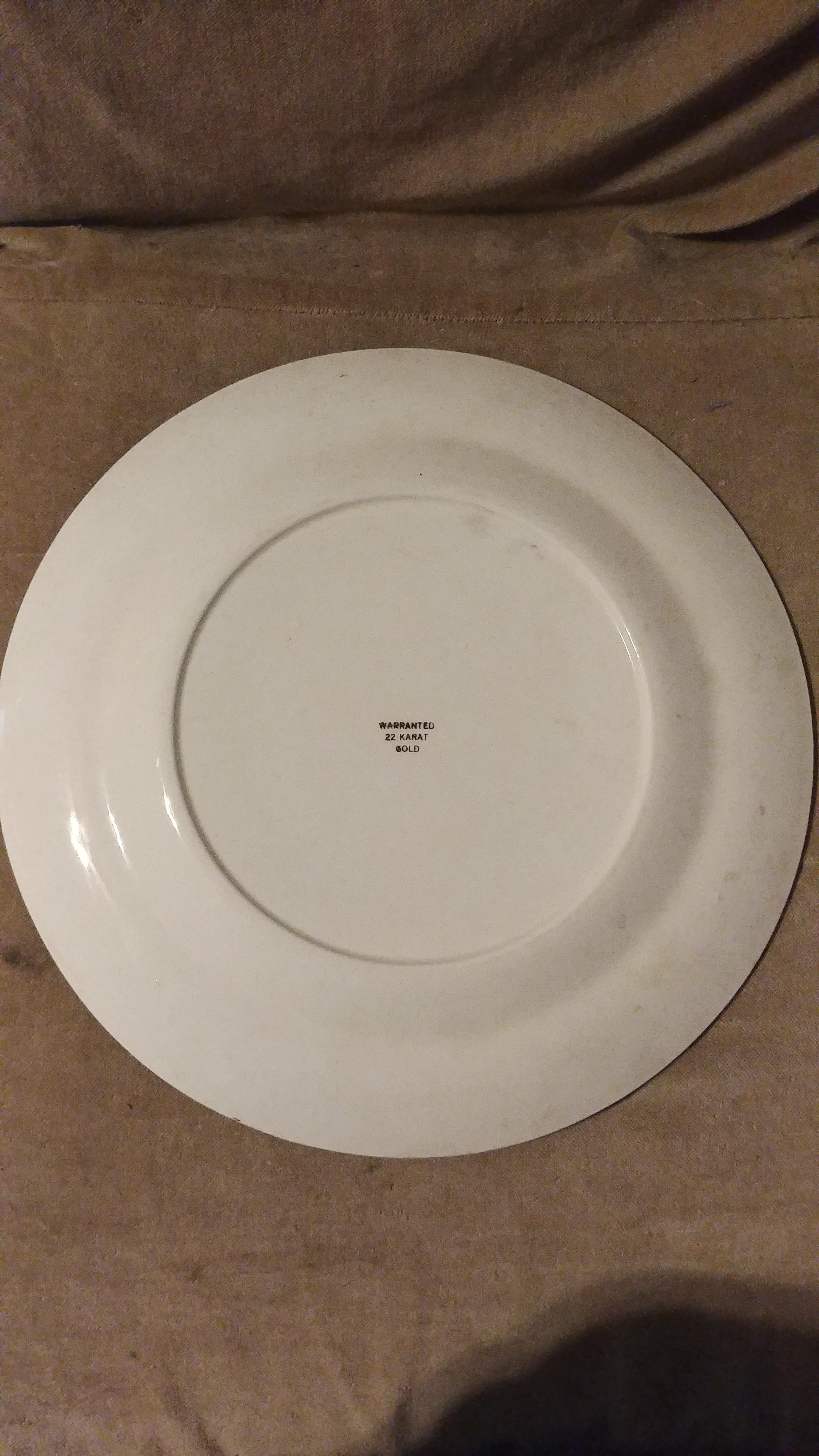 Plate with picture, with 22 karat gold. Marked "warranted 22 karat gold" on back