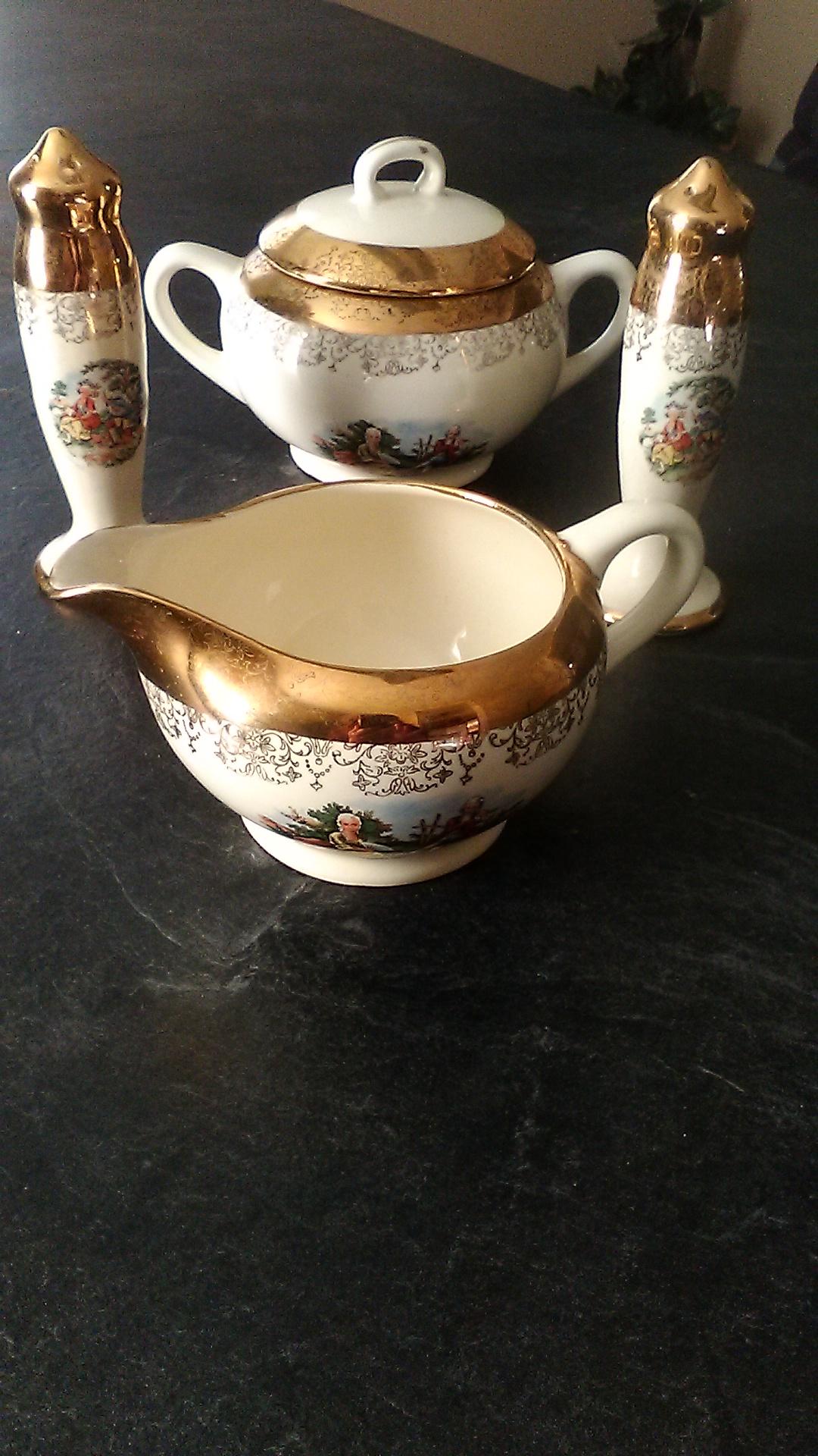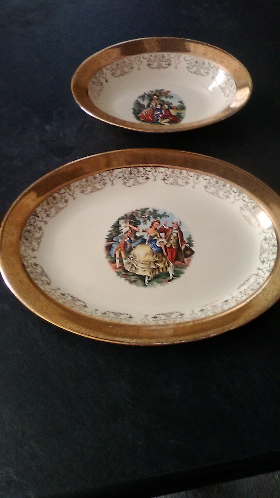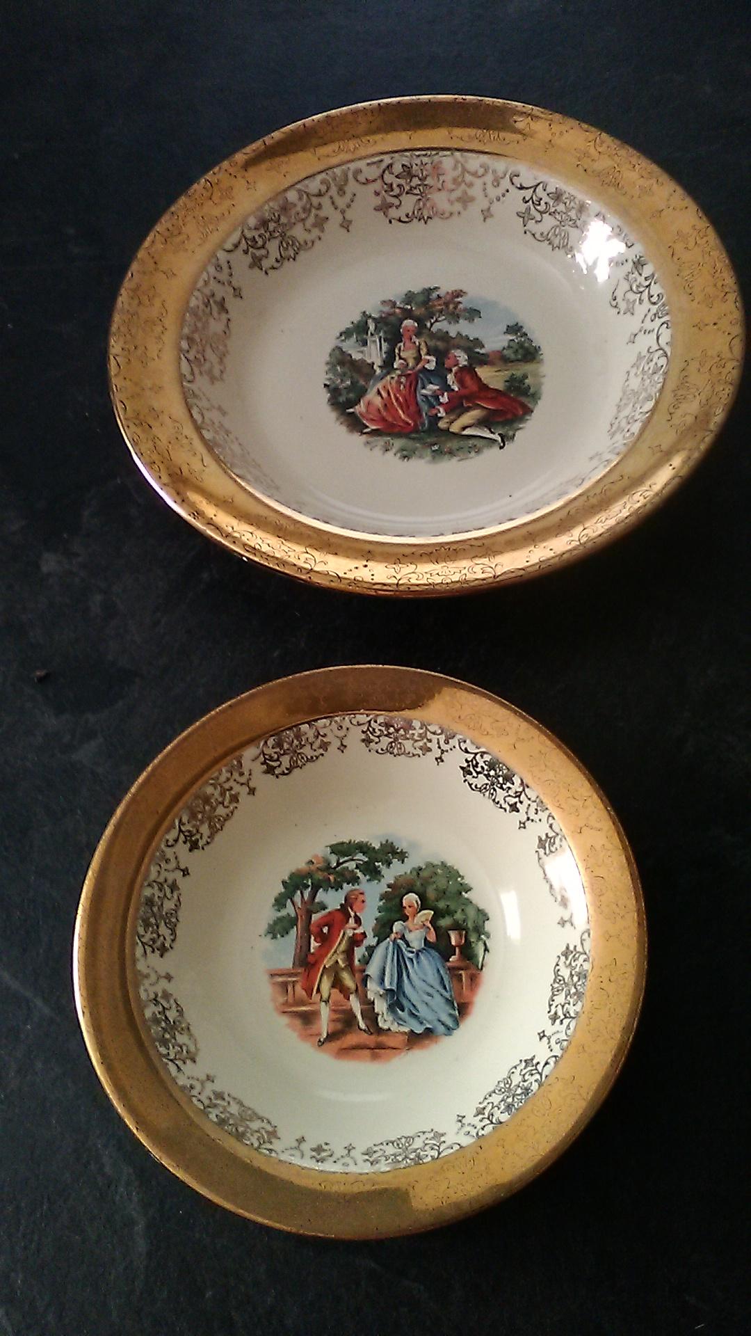 I have 54 pieces of these dishes varies from dinner plates,cups,salt and pepper shakers,gravy bowl,sugar bowl,platter.all with no chips.They have Martha and George pattern.I want to know what they are worth and the history.