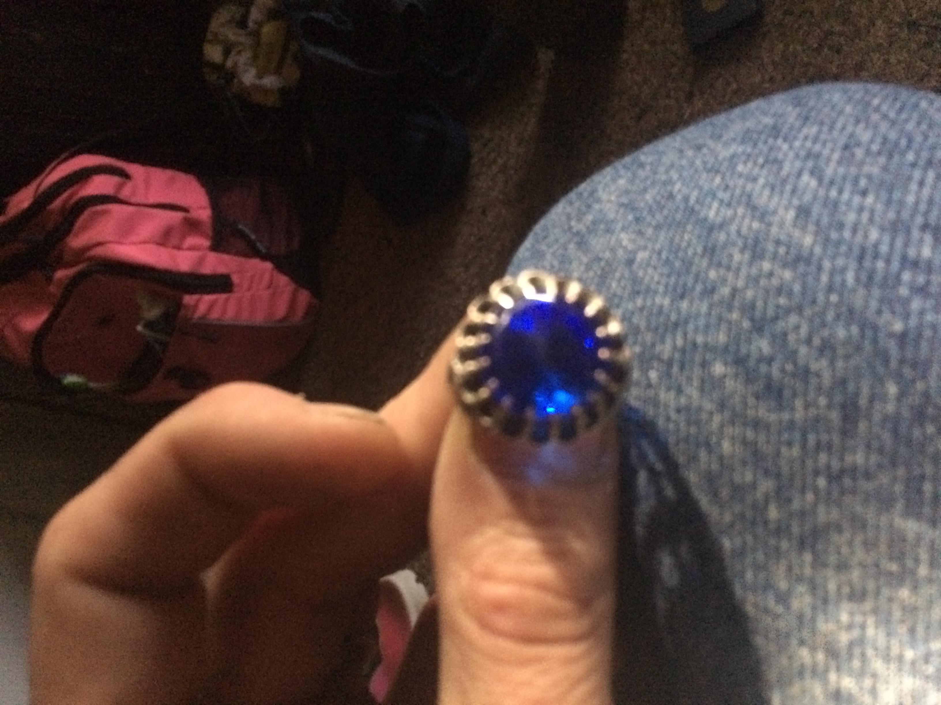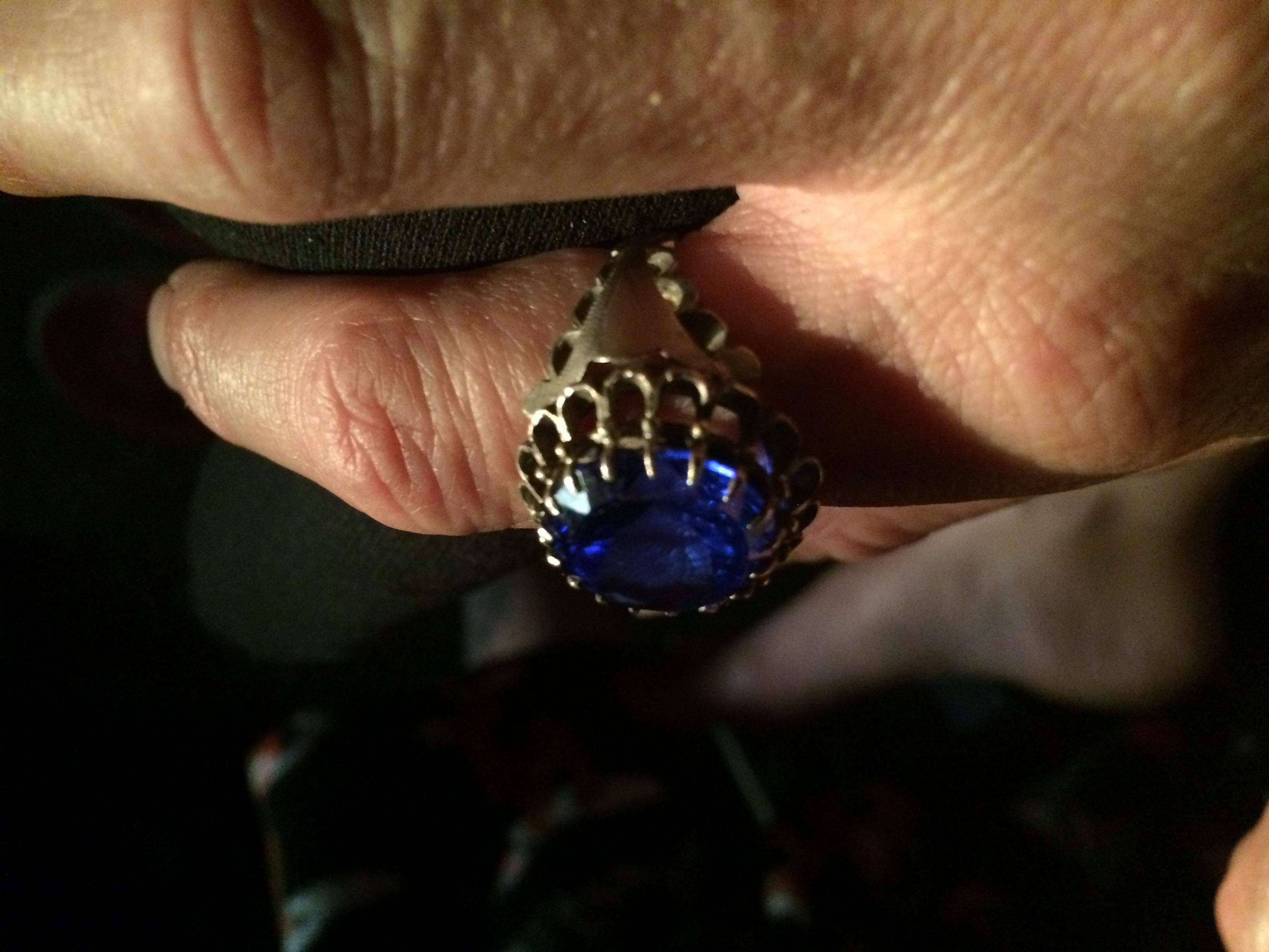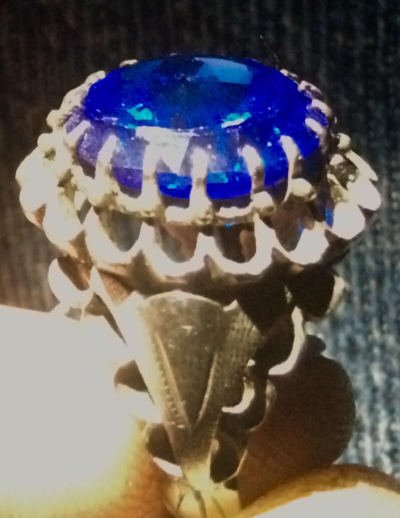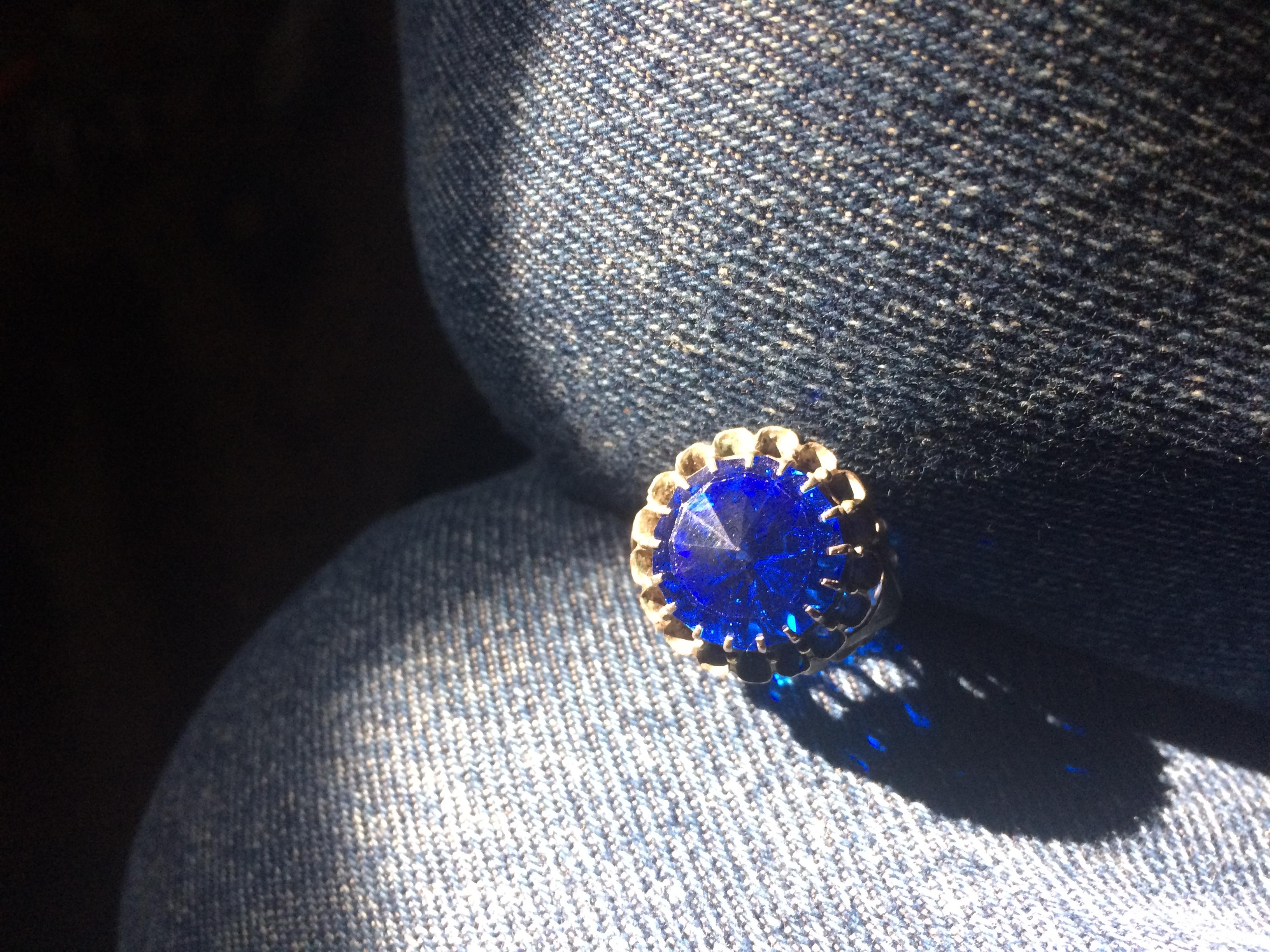 2.5gr. Natural Blue Sapphire ring with 17 point claw setting. Yellow and white metal. 3 part whole band.