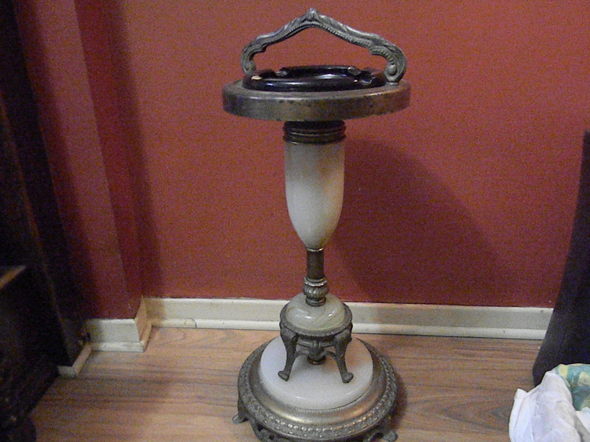 28 inch tall marble and metal ashtray