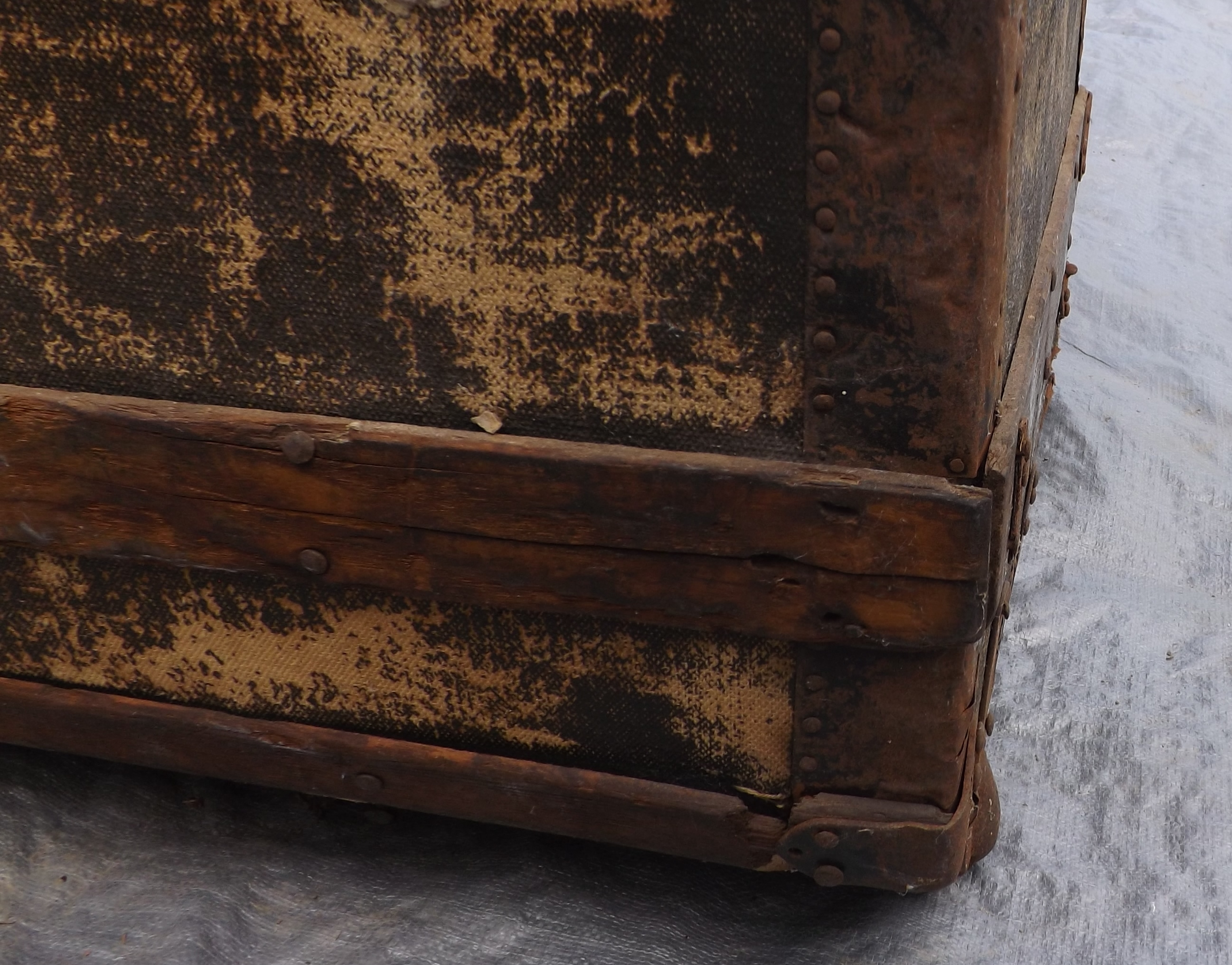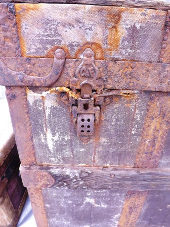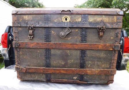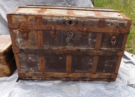 3 antique wooden trunks, Crouch & Fitzgerald, and 2 unknown