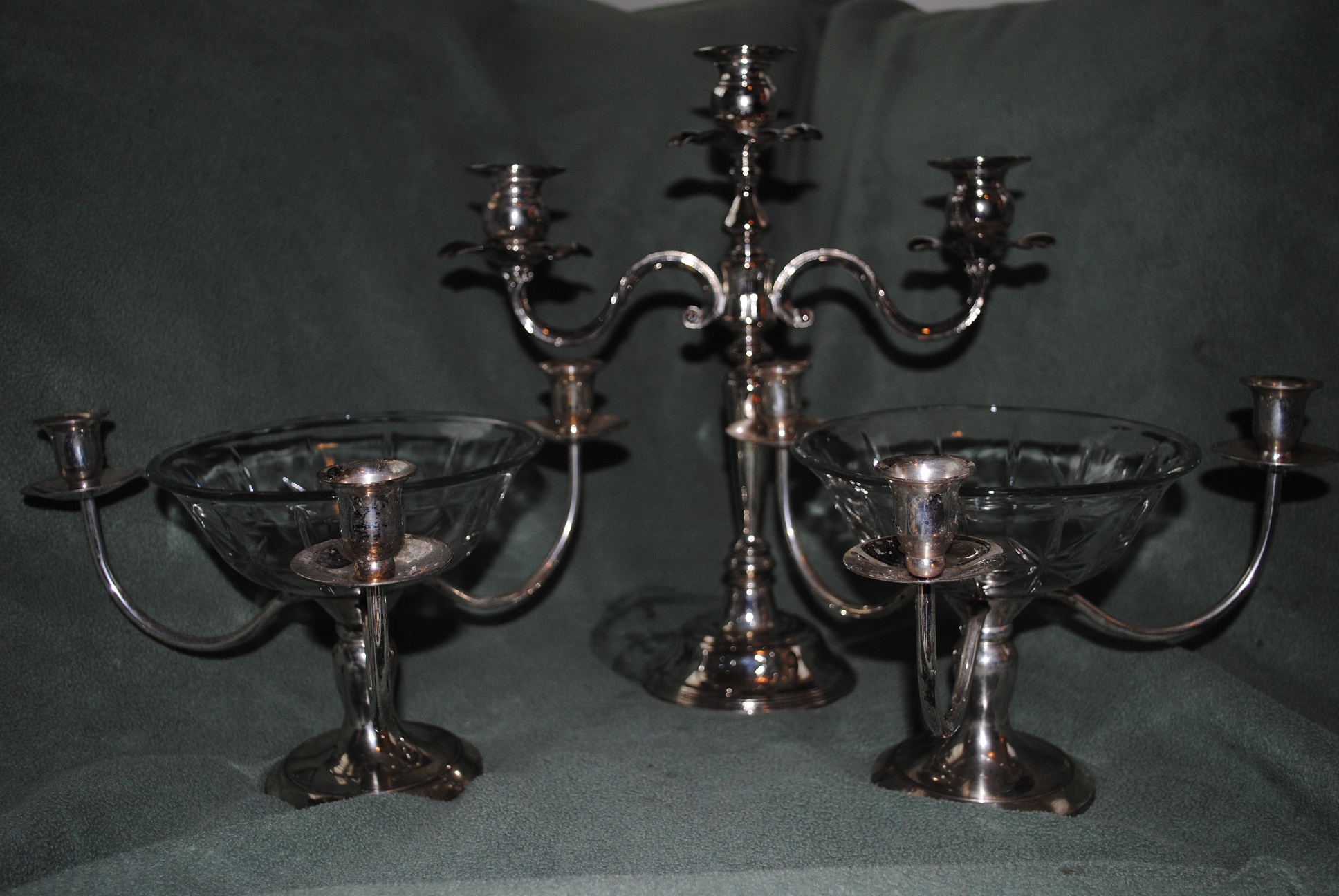 There are 3 candle holders all 3 arm all sterling silver know they were made in India The glass /crystal its thick can remove