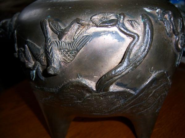 it has 3 legs. It looks like an urn? lots of design as you can see in the picture. I am curious what this is