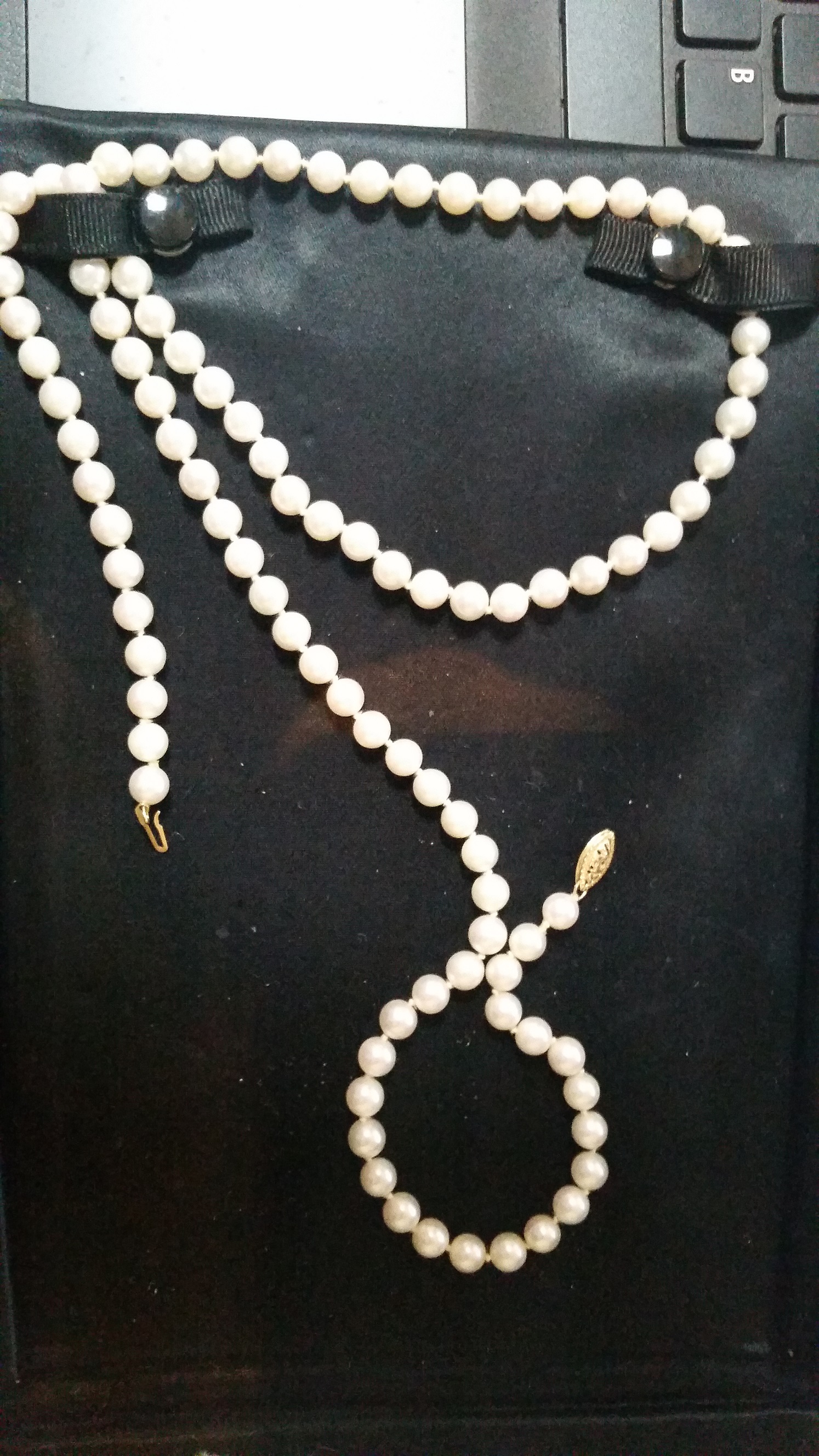 This was bought new in the 80's, not sure if early or middle. I know it was purchased by my husband for his mom, from a dealer for $4,000. for both pieces. It was given to me by my MIL before she passed and I have no idea of it's currant value. It is in the original case and the clasps are 18K, at least I was told. There are 100 perfect pearls in the necklace with knots in between. The Pearls I think, are a medium sized. (note the penny) On the bracelet it has broken in two places and needs repair but otherwise both pieces are excellent condition and worn very rarely. The pearls on the bracelet are smaller than the ones on the necklace. Three strands with the middle strand just slightly larger than the two others and there are 72 pearls on it. We are planning to sell them and need to know the value and how much they are worth.