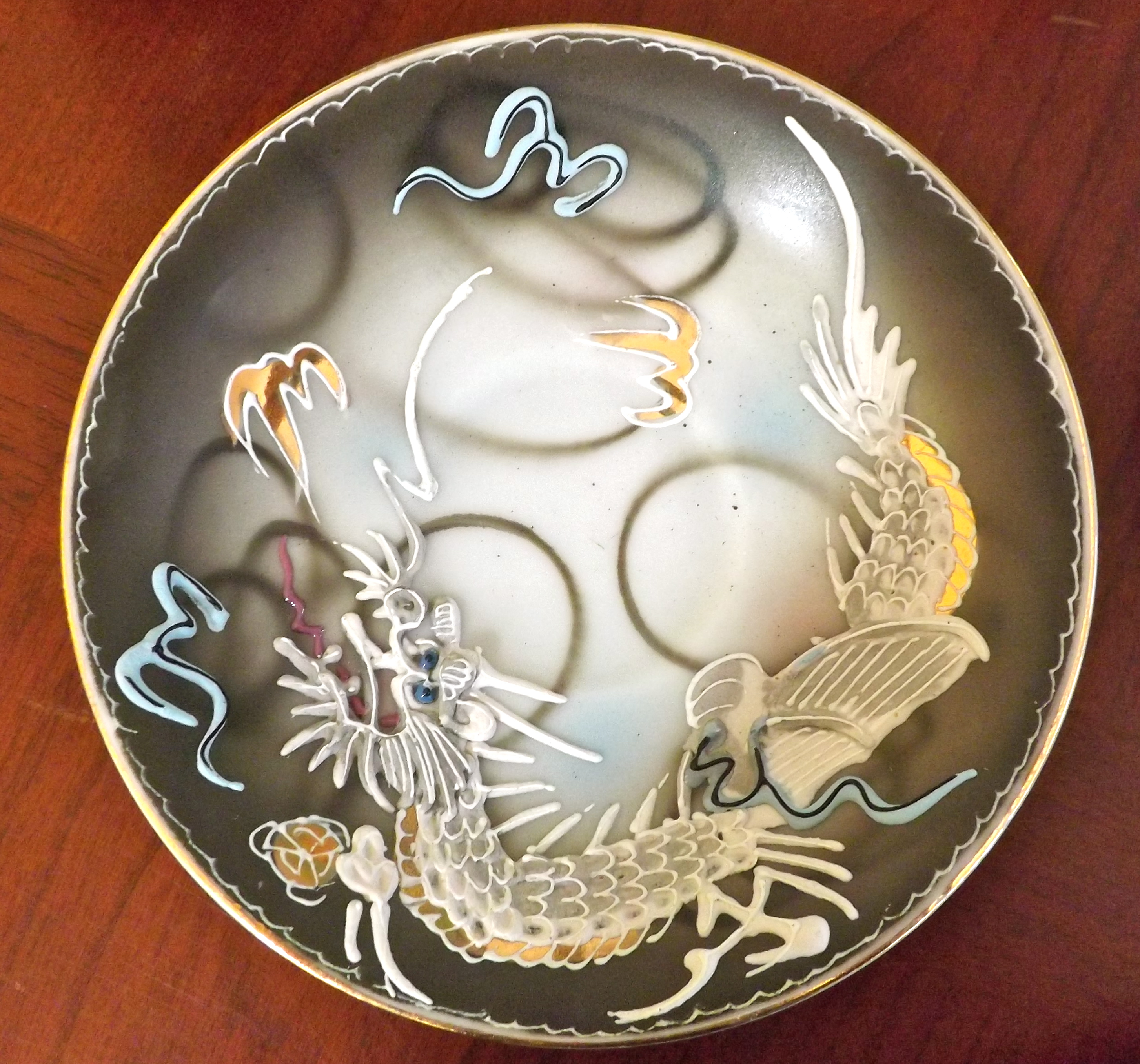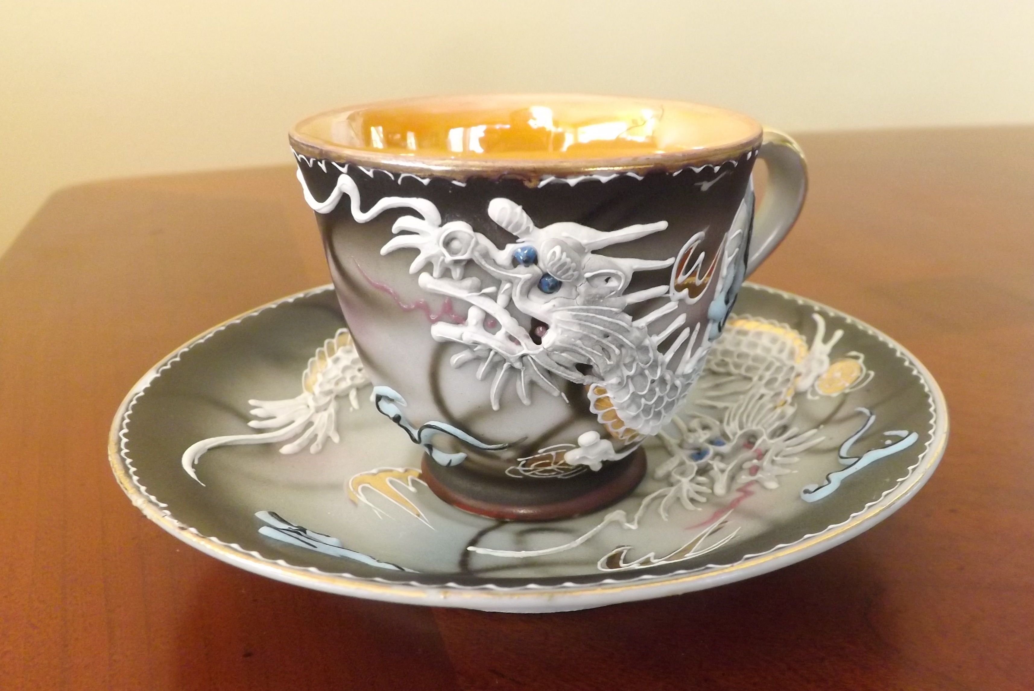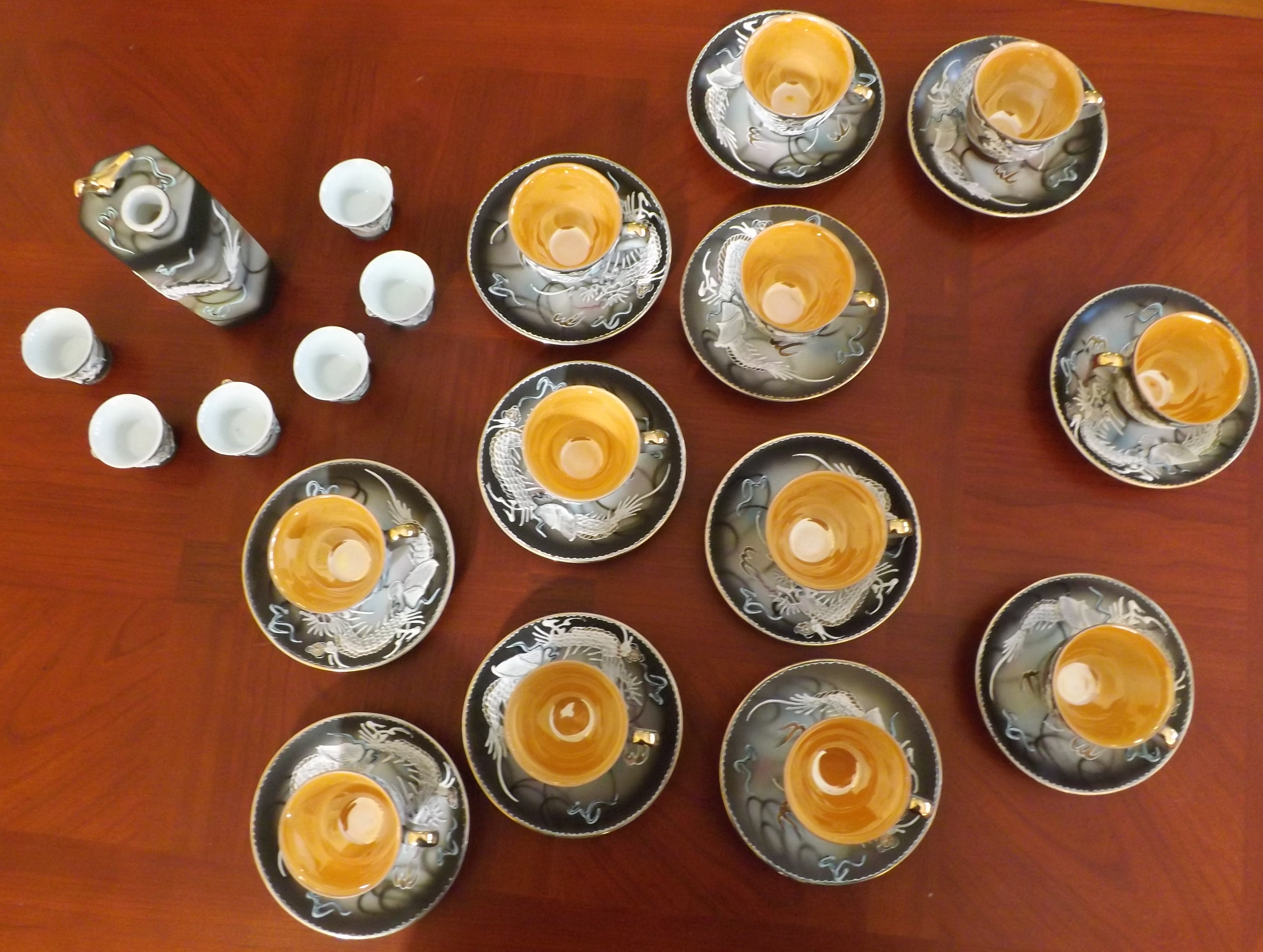 This is a 31 piece set with Occupied Japan markings which I am hoping to find more about.  The Occupied Japan markings are on the tea cups and saucers.  The sake cups and larger item it is marked only with Japan.  These were purchased by an American military couple stationed in Japan.