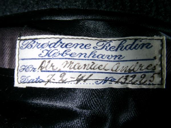 This coat is in amazingly great condition considering it was made almost 70 years ago. I have closely inspected it and could not find anything wrong with it. Coat was made for a Sir Manuel Andres 7/2/1941 with number 13225 by Brodrene Rehdin Kopenhavn. I have tried to research the name of the person it was made for and also the company who made it but do not know enough about antiques to connect anything to this caot.
