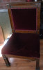 The side chair appears to date from the 1870s, about the time the church was founded. According to a curator itr displays the hand carving and decoration expected of its genre (Eastlake style).  It has its original finish and upholstery.  The 3 taller chairs  have the appearance of a blended Eastlake/Colonial Revival style and were upholstered to match the side chair