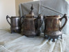 The marking on this set post dates 1898 when Meriden became part of the International Silver conglomerate. These sets look far older than they are because they are based on earlier English Georgian style examples made during the 18th Century. Not much demand for these sets currently, we see them go at auction in the $200-$400 range.