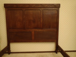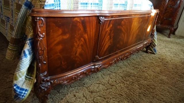 Oak Bedroom Set - purchased at antique auction in 70's - Consists of Bed with arched food board (saw exact match - called 'Arts & Craft), 2  night standfs with marble tops, wardrobe & buffet type cabinet with mirror and white marble top.