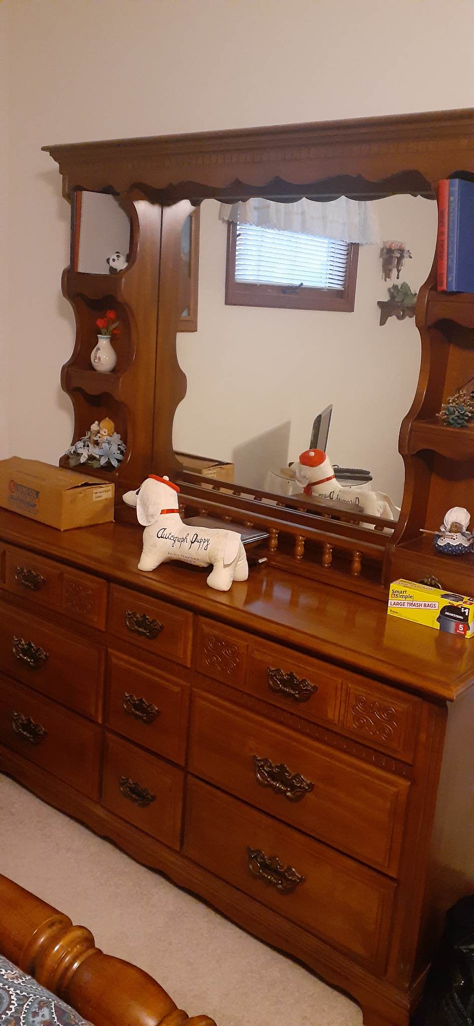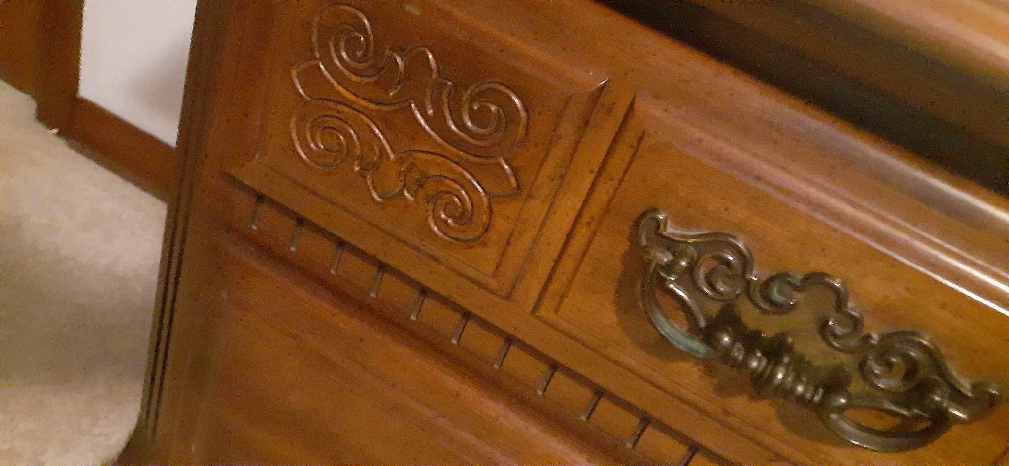 I'm looking for an estimated value on this 5-piece Bedroom set by Sumter Cabinet Co. This set belonged to my grandmother who bought it during the 1970s. I don't know what type of wood this is but I do believe it is a stained wood.