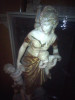 This is a statue floor lamp of a grecian woman with an urn on her shoulder and a pitcher in her hand. It is very heavy and has a milk glass type shade.
