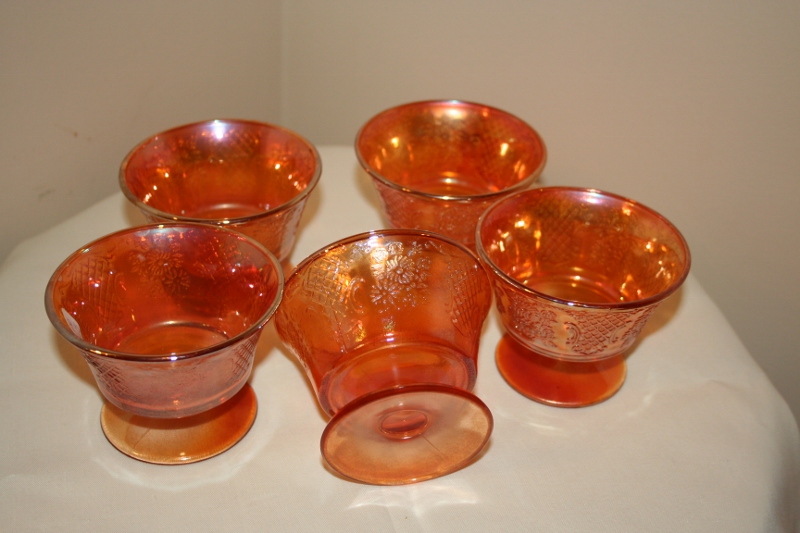 5 set dessert dishes - orange/metallic in color