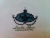 Most of these pieces show very little wear. No chips or cracks. The 13" platter has some gold lose in one section. Most of the pieces have at least 98% or better of their gold trim. No loss of the flowered trim on any of them and only minimal scratches. The gold/light green emblem shown on the lower of the teacups appears to be the only one, the rest of the china has dark green as shown on the teacup at the top.