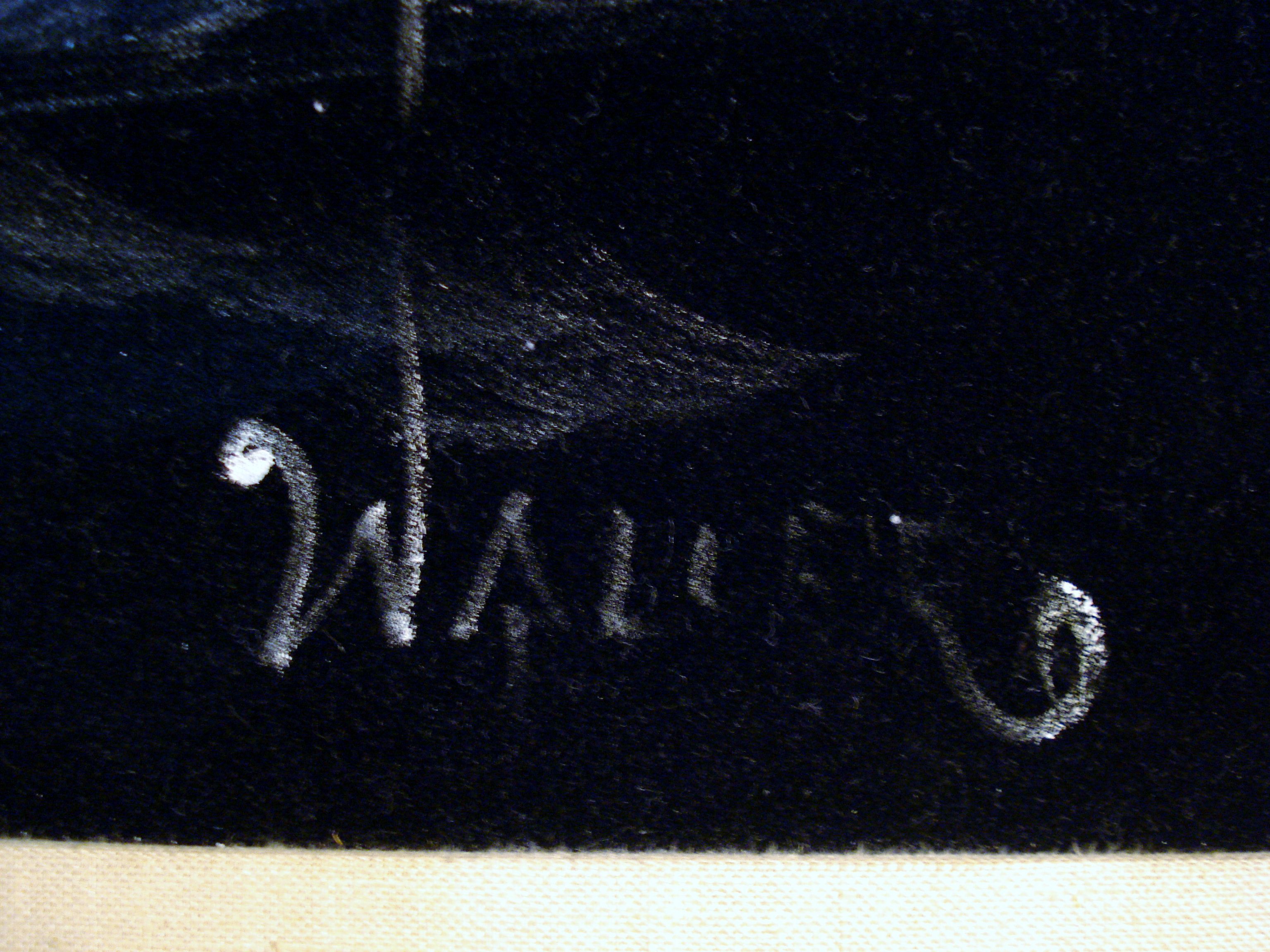 The fact that it was painted on black velvet makes me somewhat skeptical right away but the frame itself I believe has some value if not the painting. The author's name in the corner is not 100% clear but I believe it says "Waller".