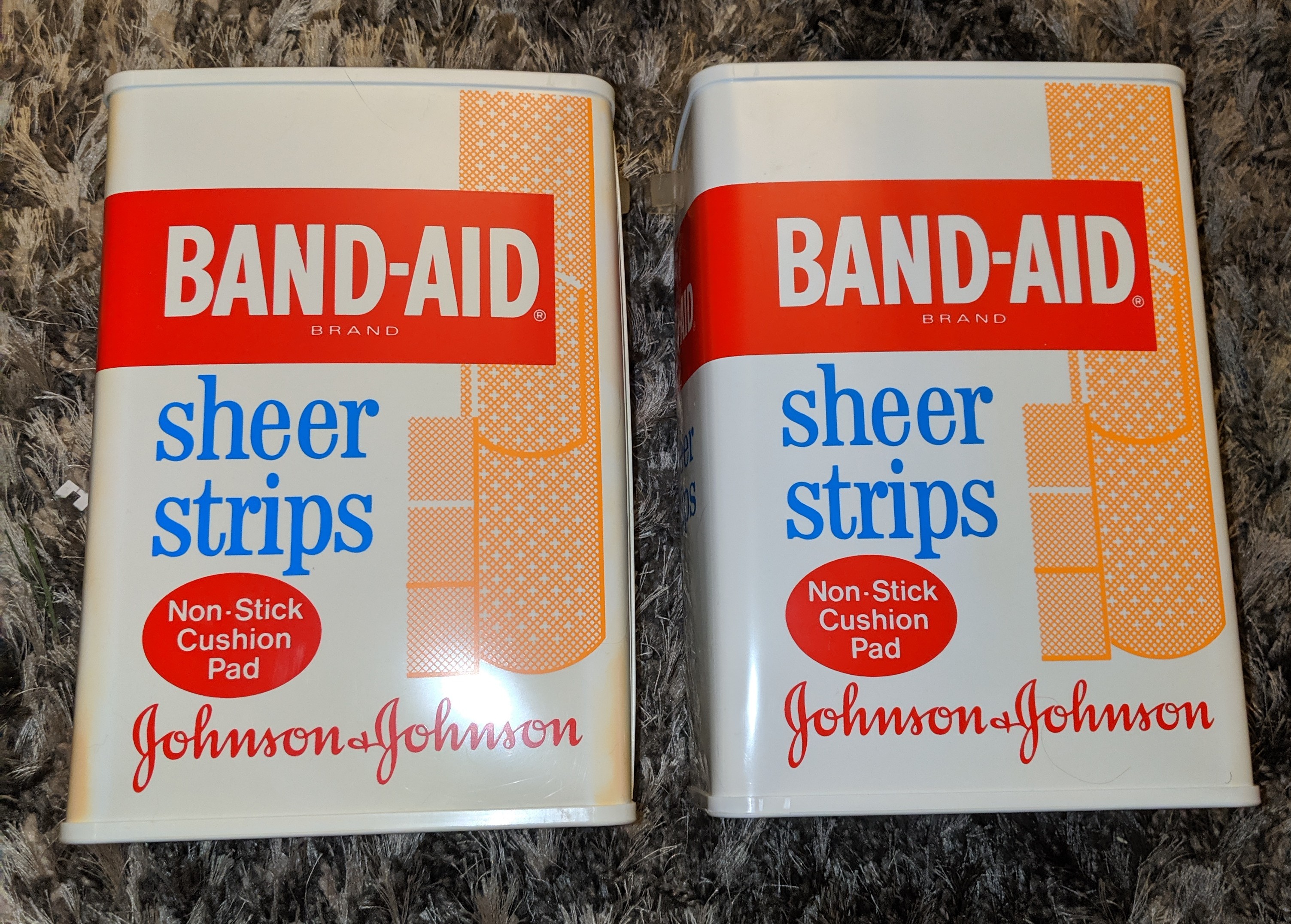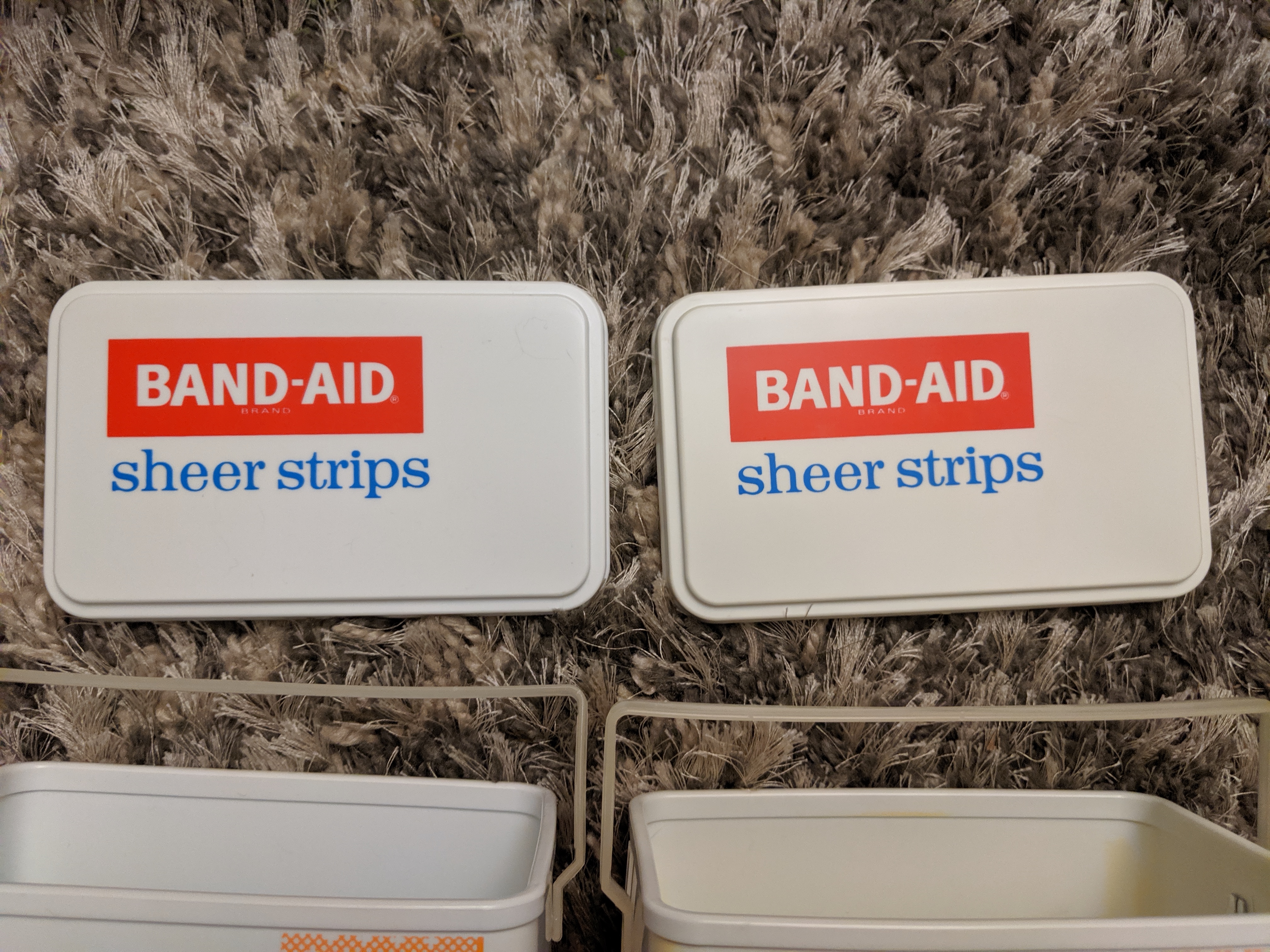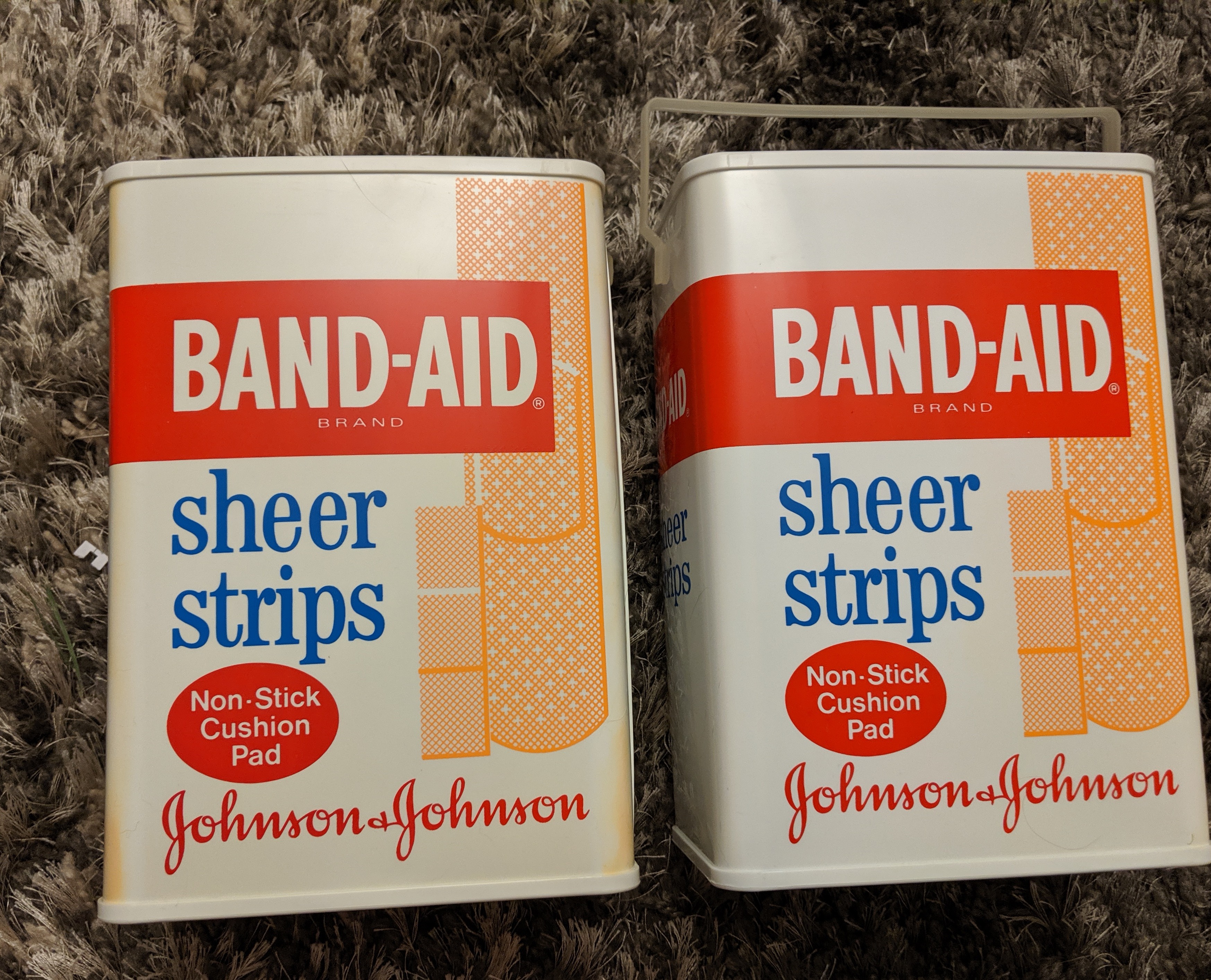 Red thermos set was opened, looked at & returned to original box. Some yellowing. I believe good condition for age.