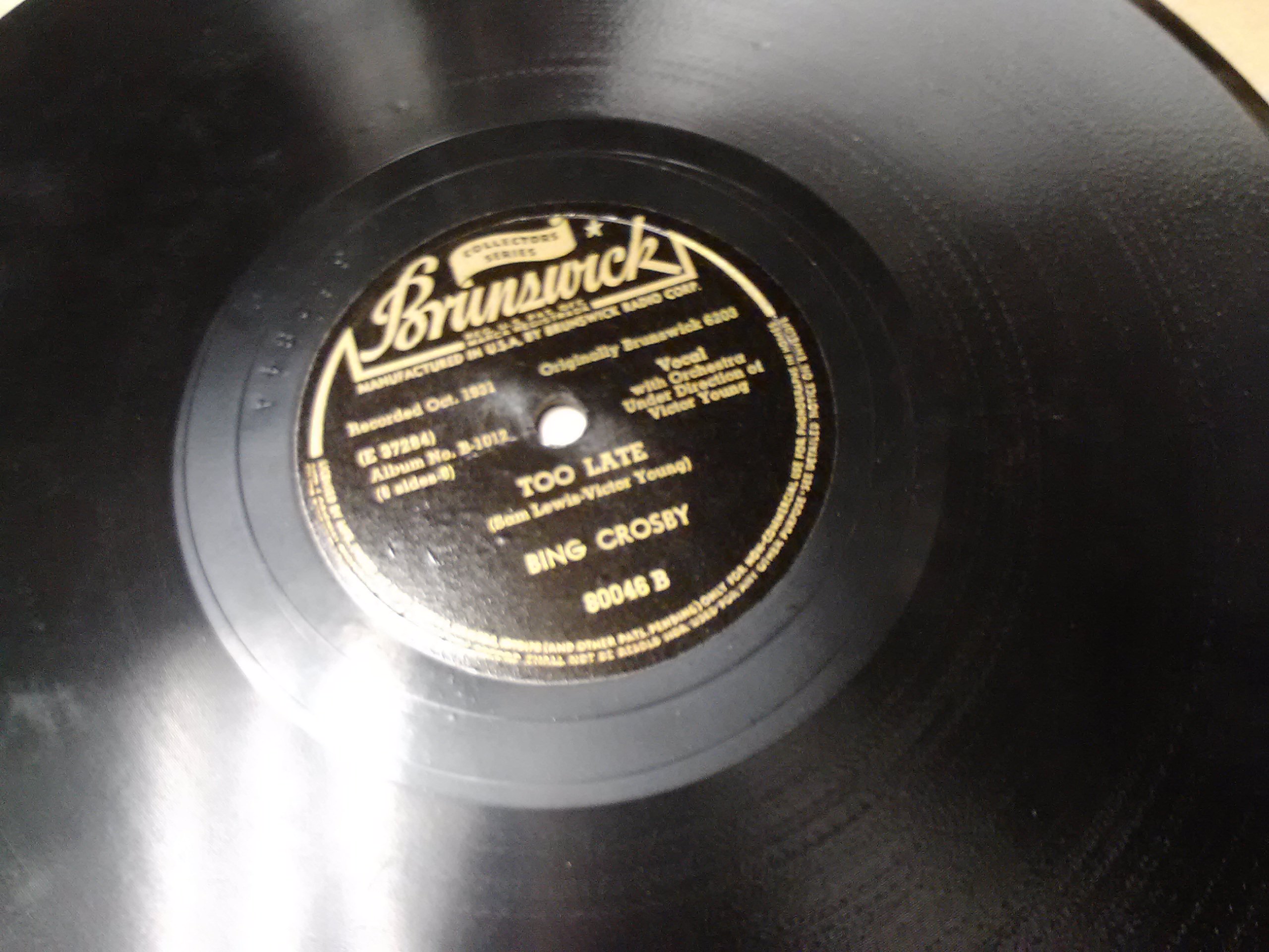 I stumbled upon a rather large collection of 78 records with various artists such as Bing Crosby, Frank Sinatra, and Judy Garland, among others. They are in very good condition with minimal to no use marks visible on them. I'm checking on their worth/rarity. I have several pictures and can take more but I will post a few for now to get a better idea about it.