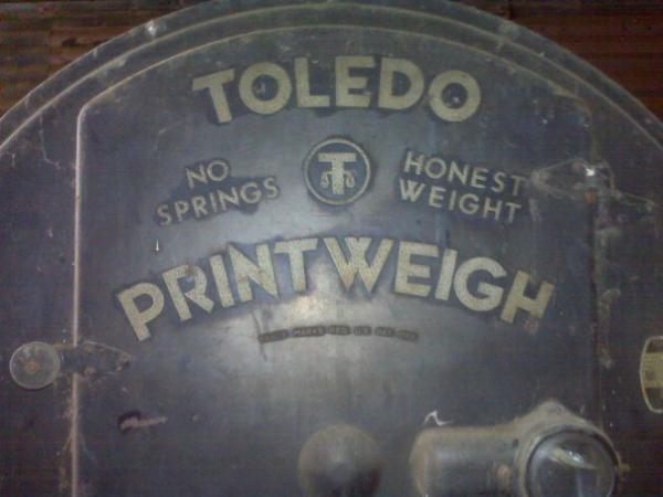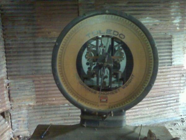its a very large old toledo scale the weigh area is 8 foot by 8 foot platform and the display area is 8 feet high im guessin its from the 1920's
