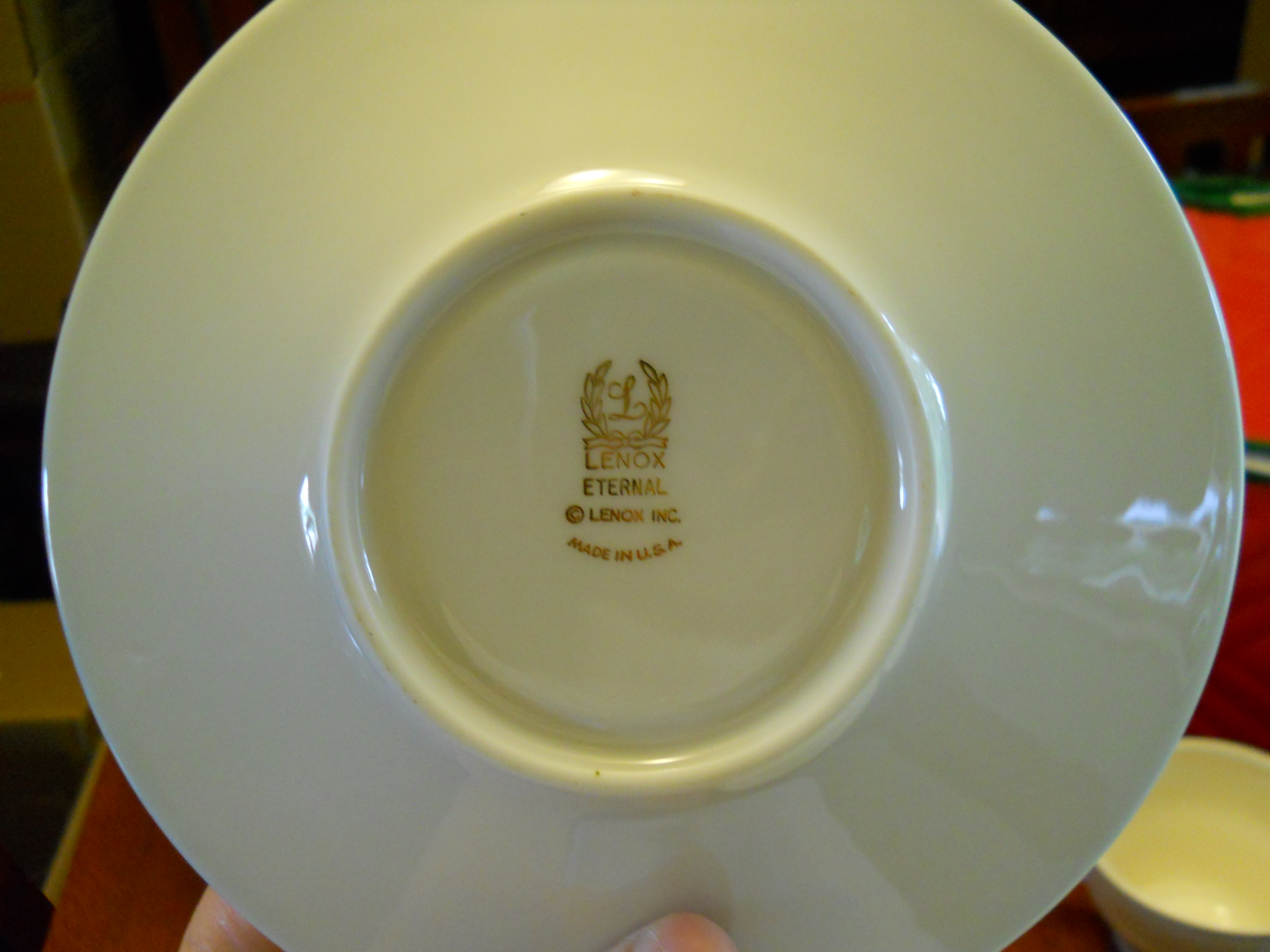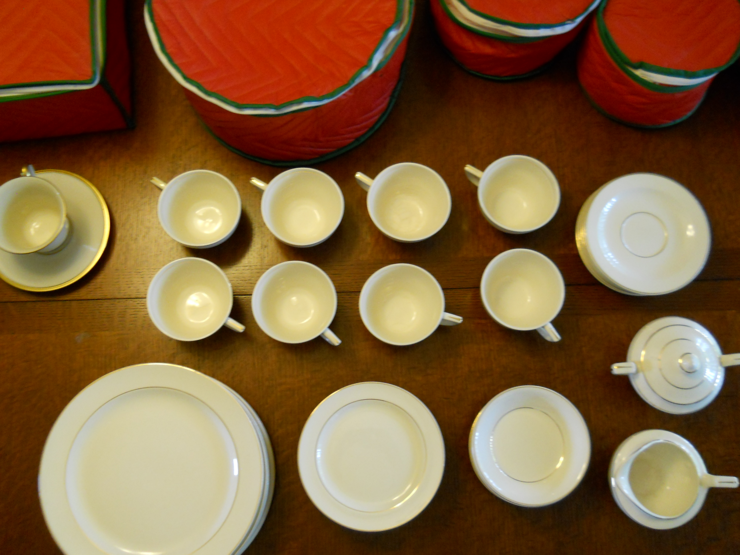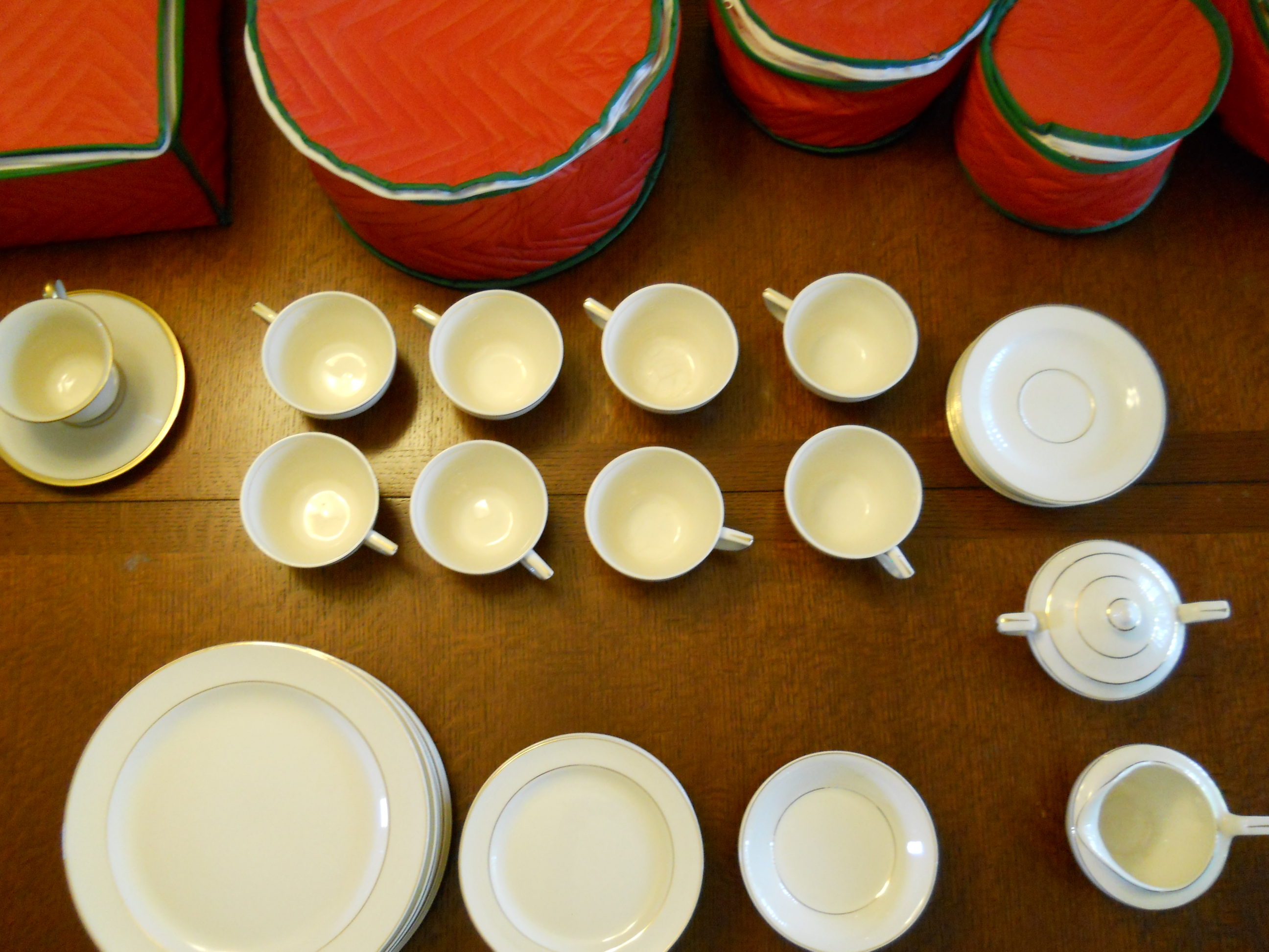 There are 8 plates, 8 small bread/salad plates, 8 cups, 8 saucers, 6 shallow small bowls, 1 sugar, 1 creamer, as well as one Lenox Eternal cup & saucer. The Cronin pattern is similar to the Lenox pattern. We would very much like to sell this entire set, but have no idea what it is worth. Please let me know if additional detail is required.