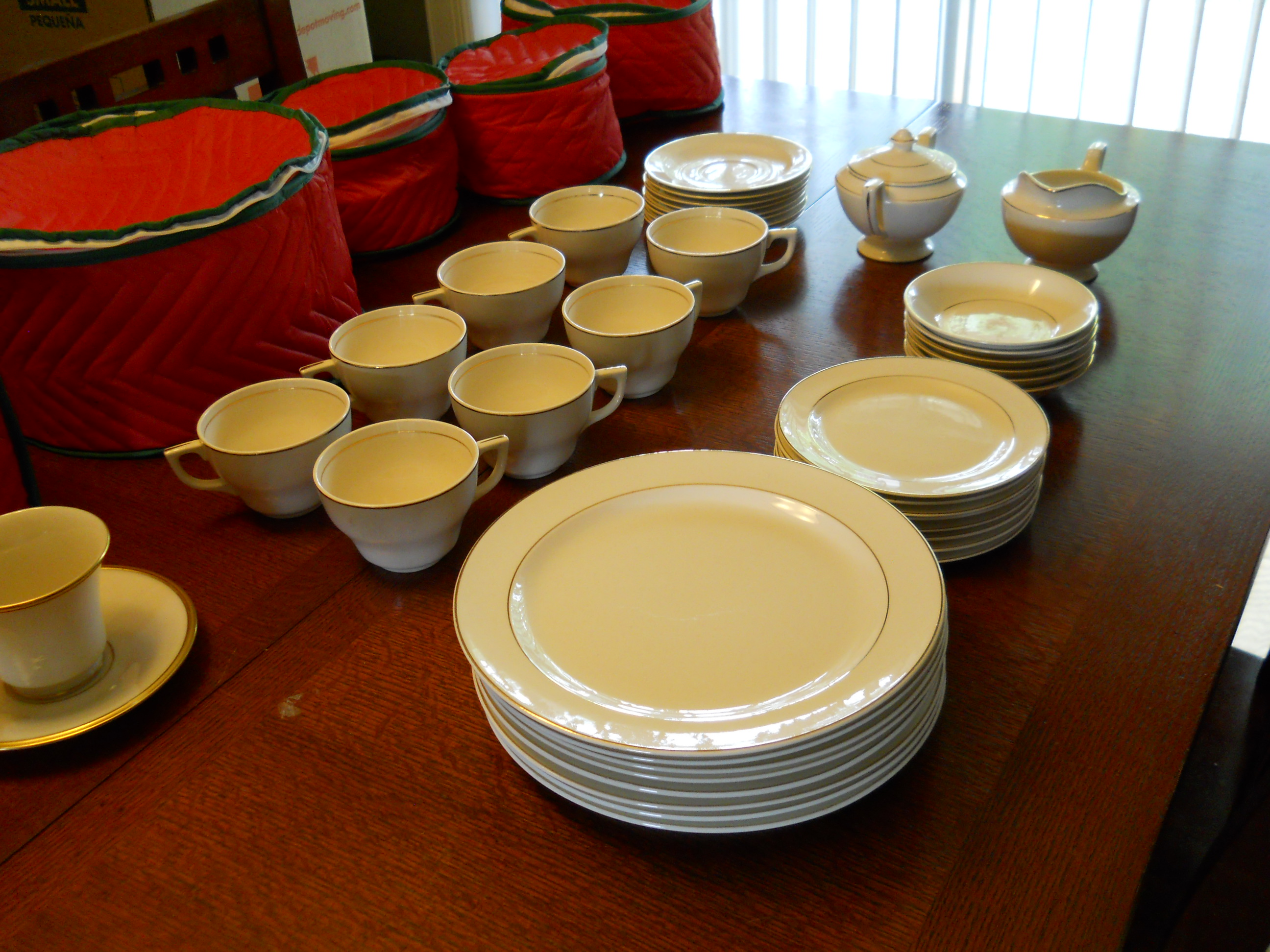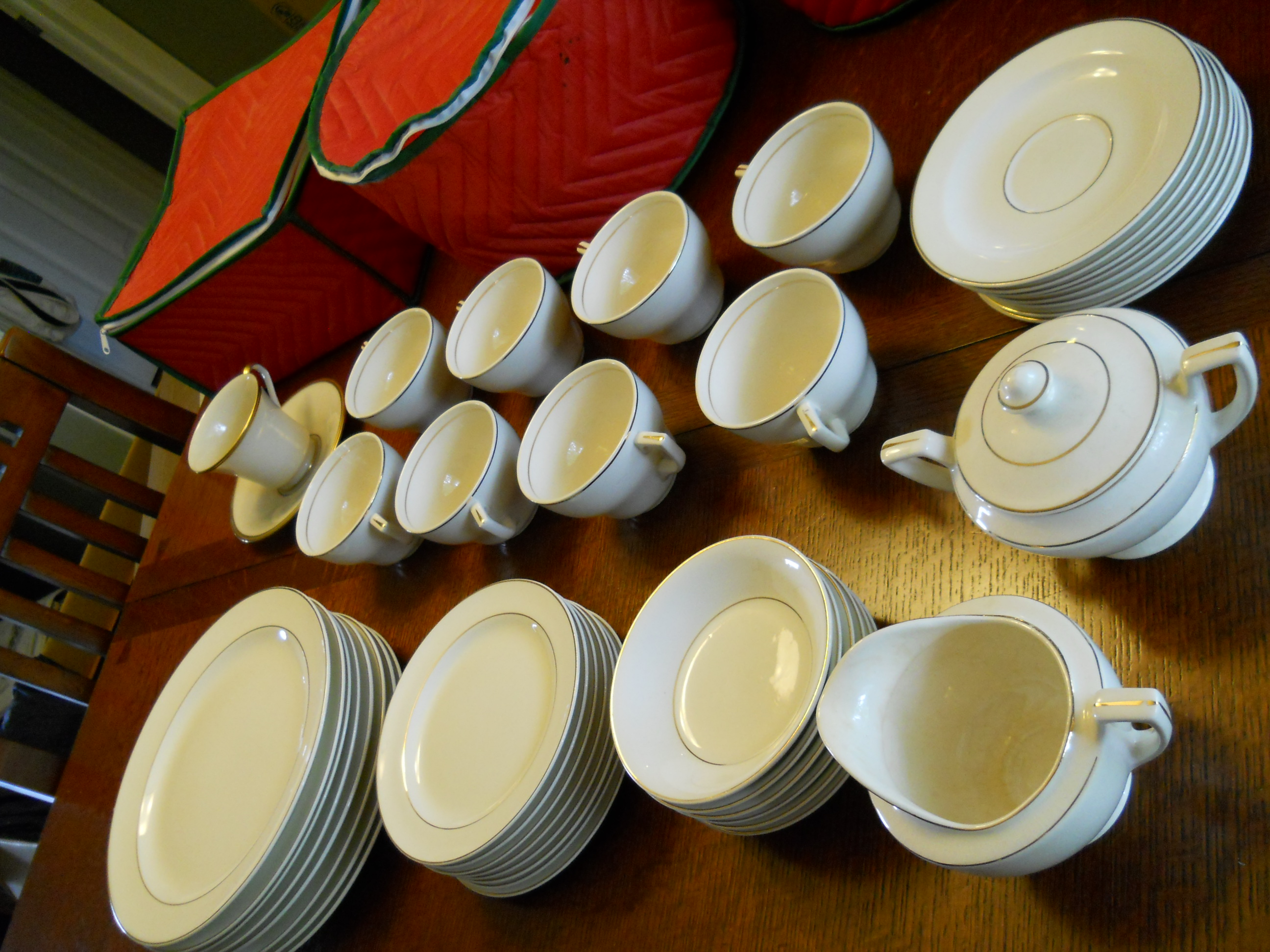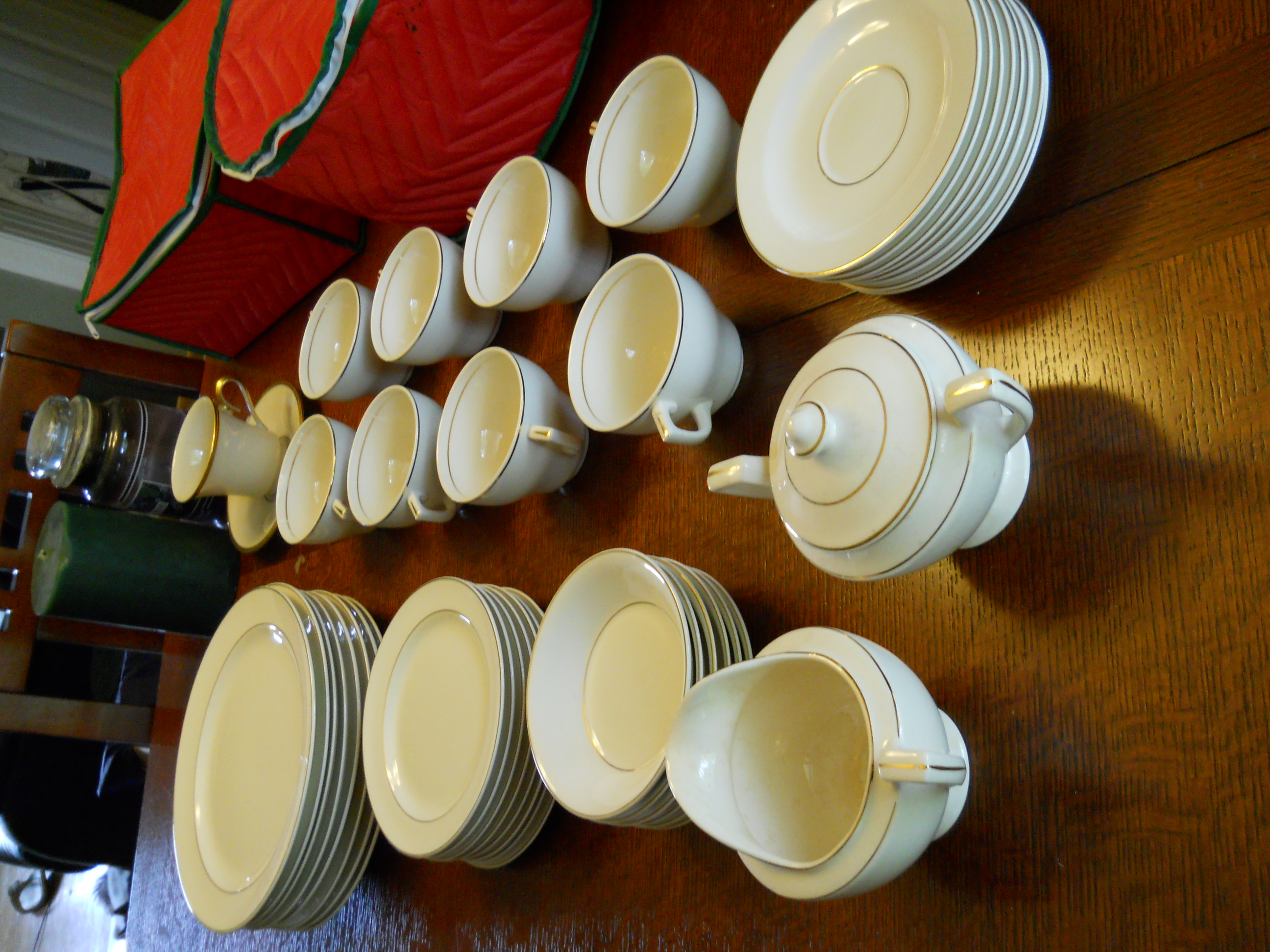 There are 8 plates, 8 small bread/salad plates, 8 cups, 8 saucers, 6 shallow small bowls, 1 sugar, 1 creamer, as well as one Lenox Eternal cup & saucer. The Cronin pattern is similar to the Lenox pattern. We would very much like to sell this entire set, but have no idea what it is worth. Please let me know if additional detail is required.