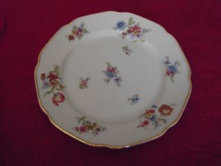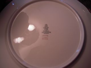 Each piece has a slightly different alignment of the floral design - for example, the bread plates have three "sprigs" surrounding the center design, while the salad plates have five "sprigs" and a different bunch of flowers in the center design. The set includes: