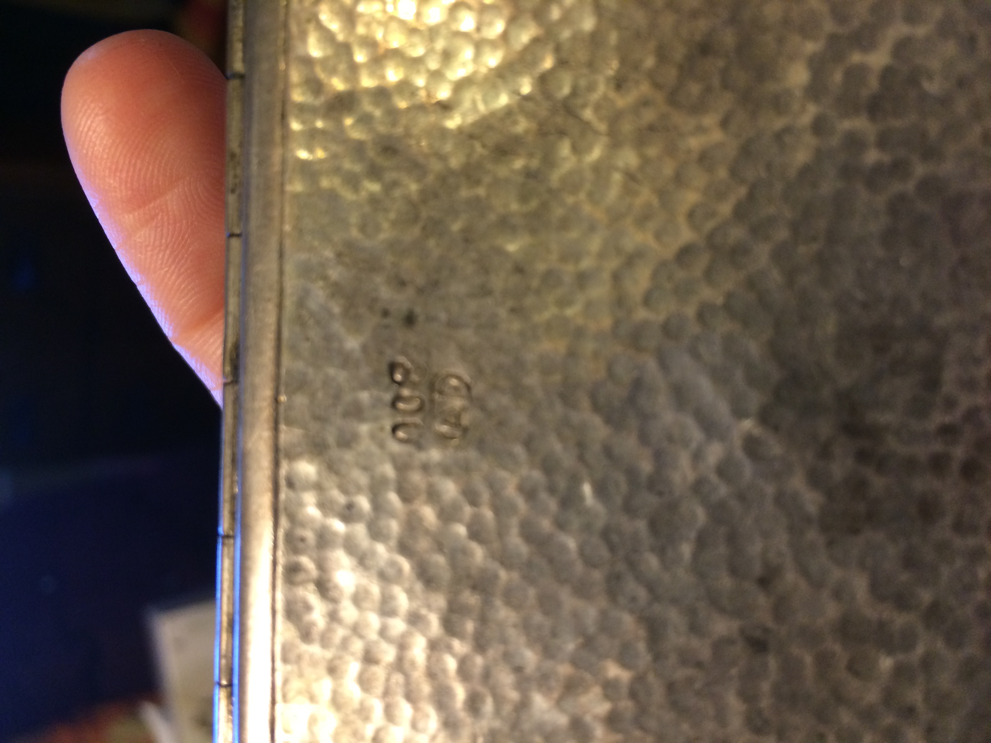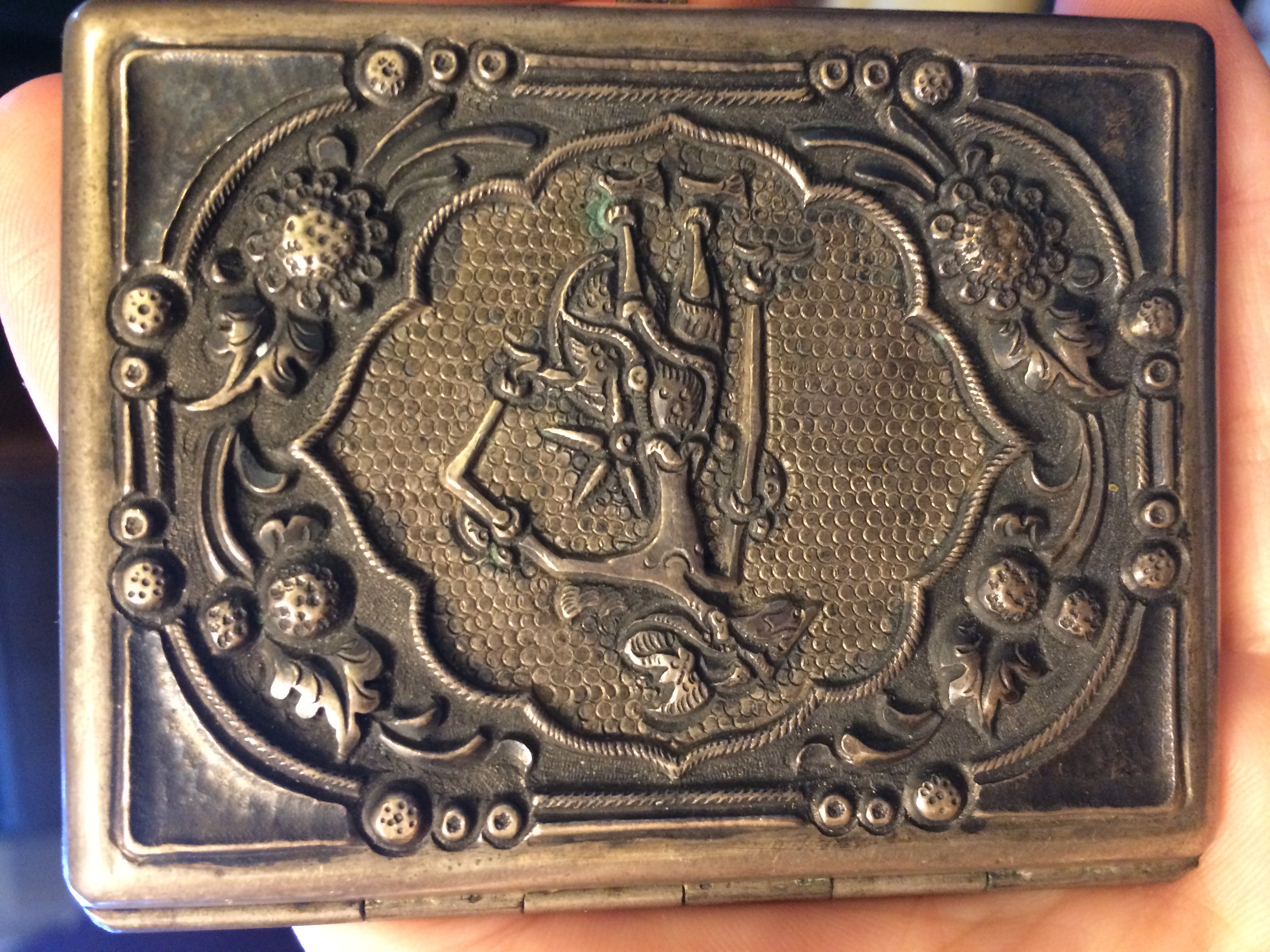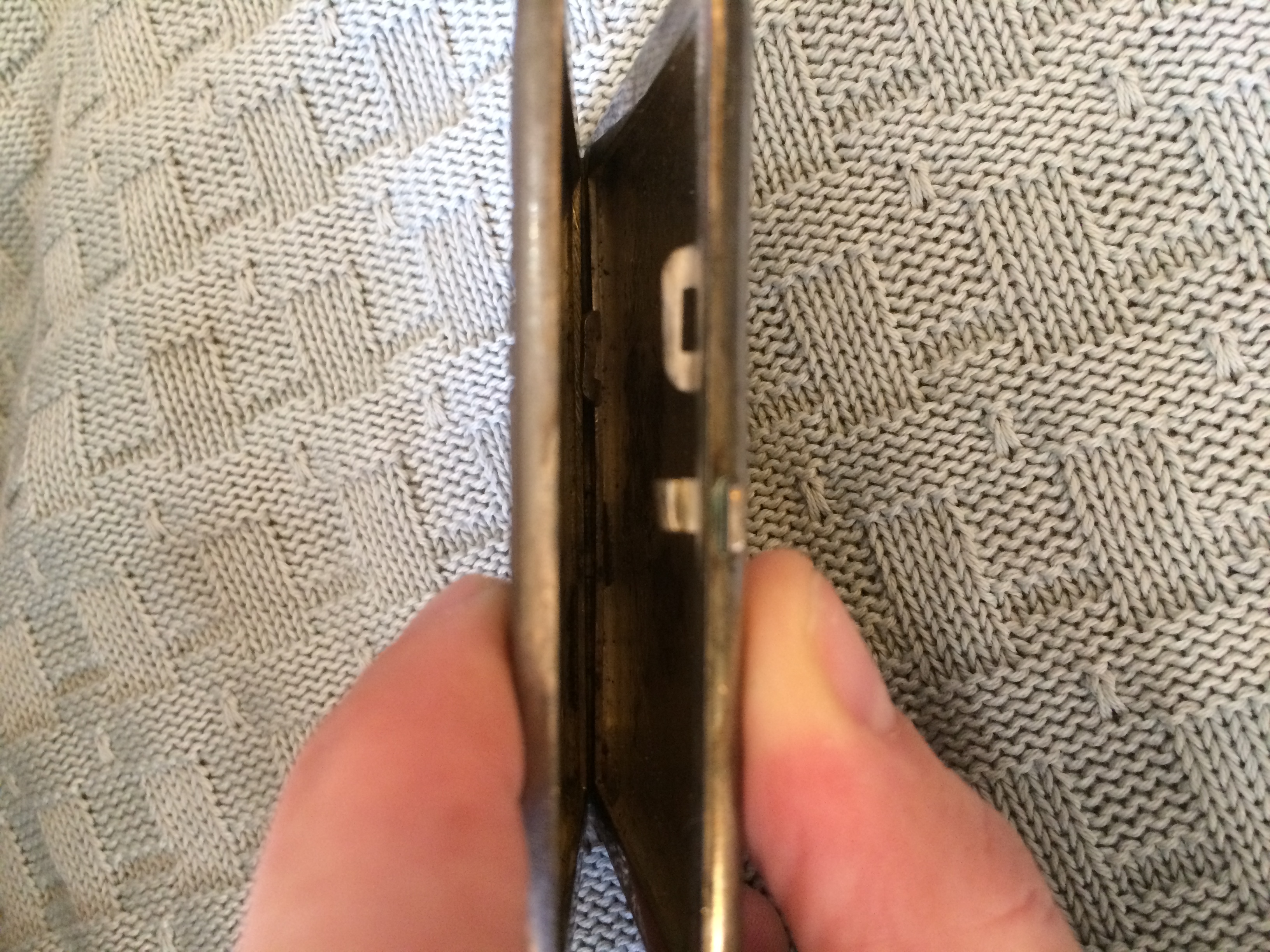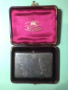 Silver card holder opens lengthwise with working hinge and clasp.