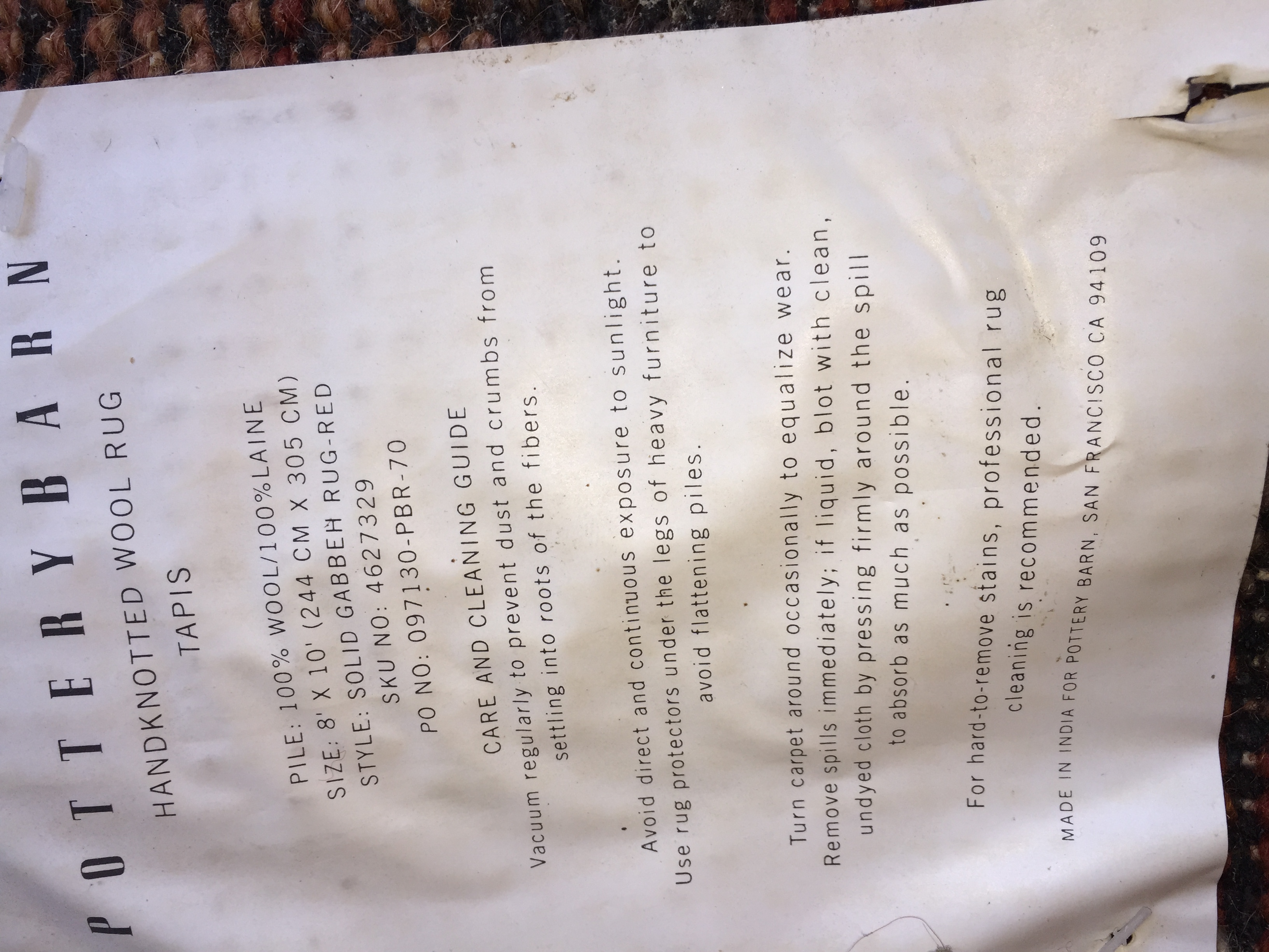 Like new Pottery Barn Wool area rug. It's 100% wool.