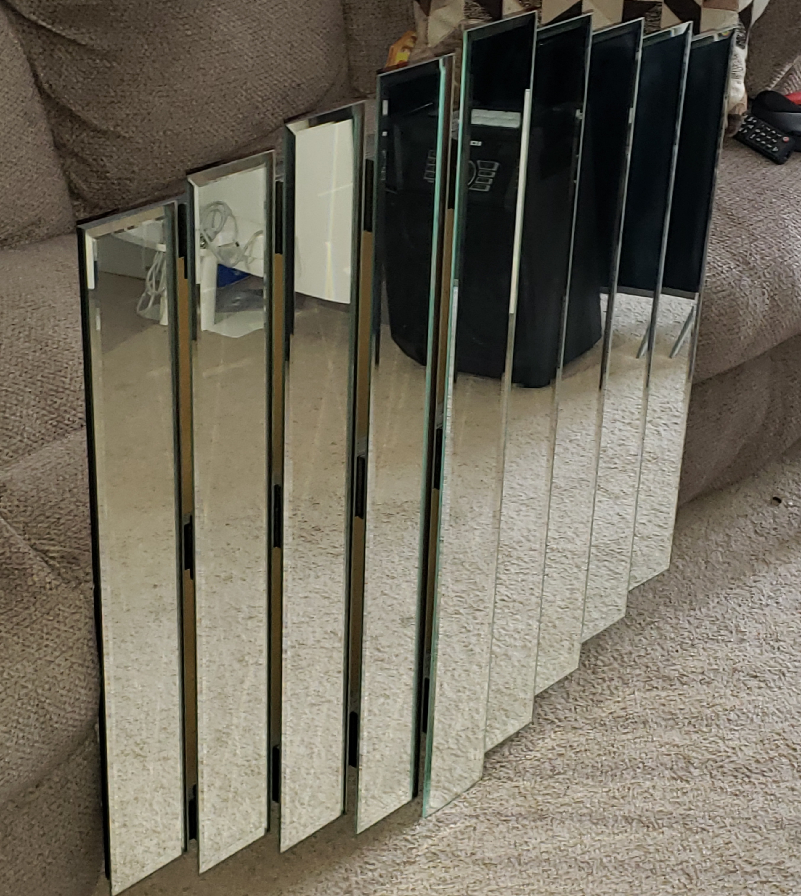 Windsor Art brand. Large Vintage Mirror Staggered Length Beveled Edges 70s 80s MCM Art Deco 36x36x3