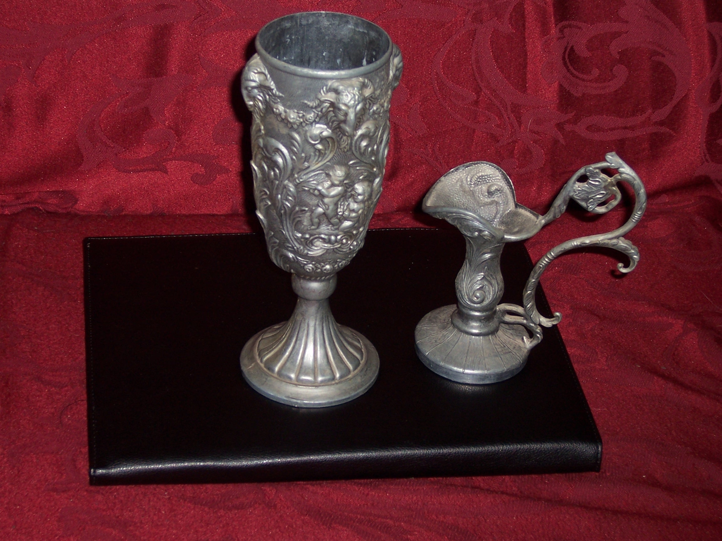 90%peltrato chalice of itali with children and ram on chalice with removeable lid