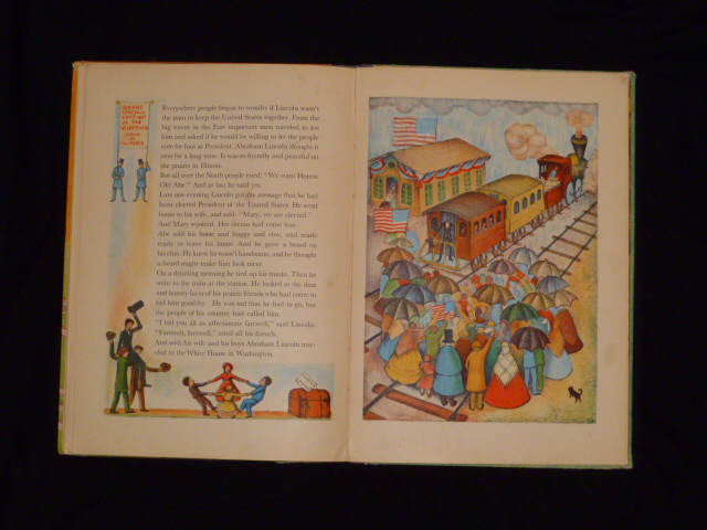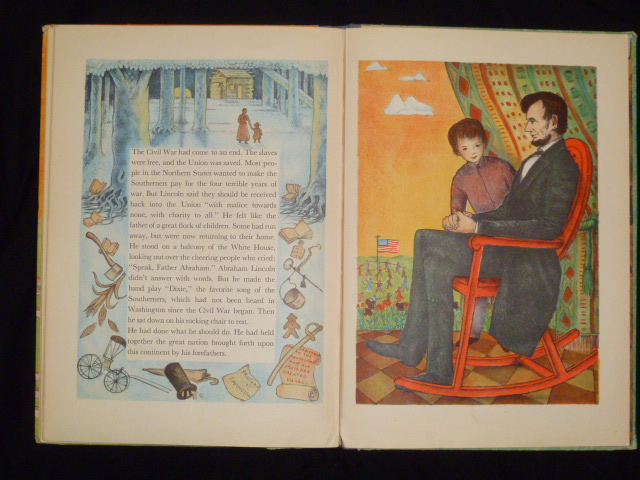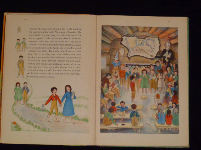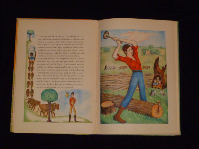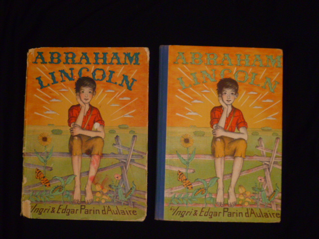 Abraham Lincoln by Ingri and Edgar Parin d'Aulaire is a childrens picture book. It is in great condition. Copyright 1939, 1st edition, by doubleday, dorin and co. inc.. It won the caldecott award in 1940. It has the dust jacket which is in good condition. The pictures are litheographed on stone in 5 colors