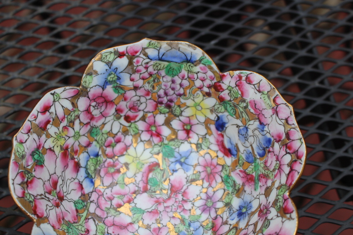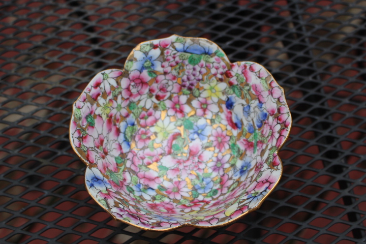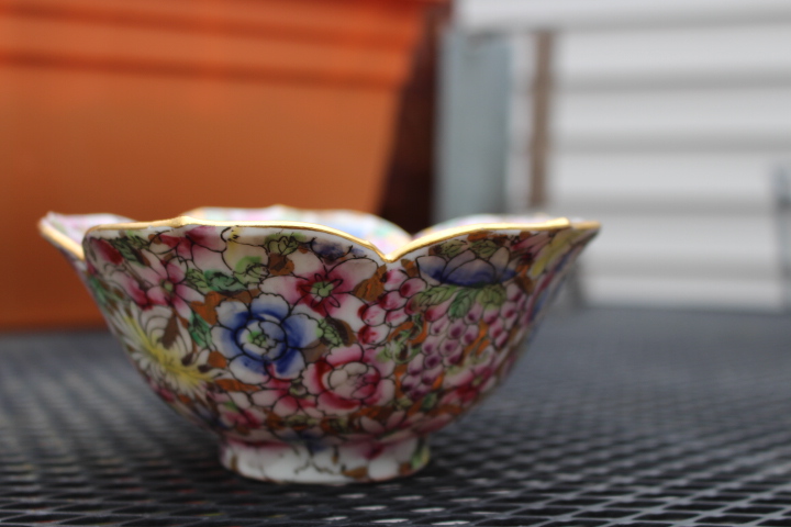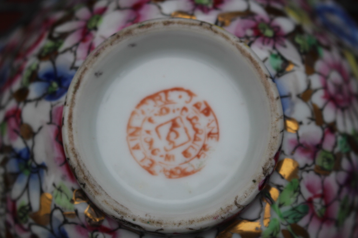 Flowered Porcelian bowl with grapes and gold trim. Shows some wear and there is a stamp mark on the bottom which i am unable to read. Would like an appraisal from someone that may know what this is and what it may be worth. I bouth this at a Goodwill store and only paid a few dollars for it.