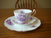 I know its from adderley it says adderley made in england bone china has written in green 218 and what looks like a t has purple flowers and one green leaf on pattern