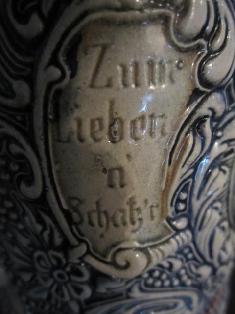 German Stein by Diesinger, Karl or son Adolf.  Possibly circa 1901.  The D.R.G.M. number or patent on the base of the stein is 154927.  It also has the words GESETZLICH GESCHUTZT and GERMANY.  The mold number is 38.