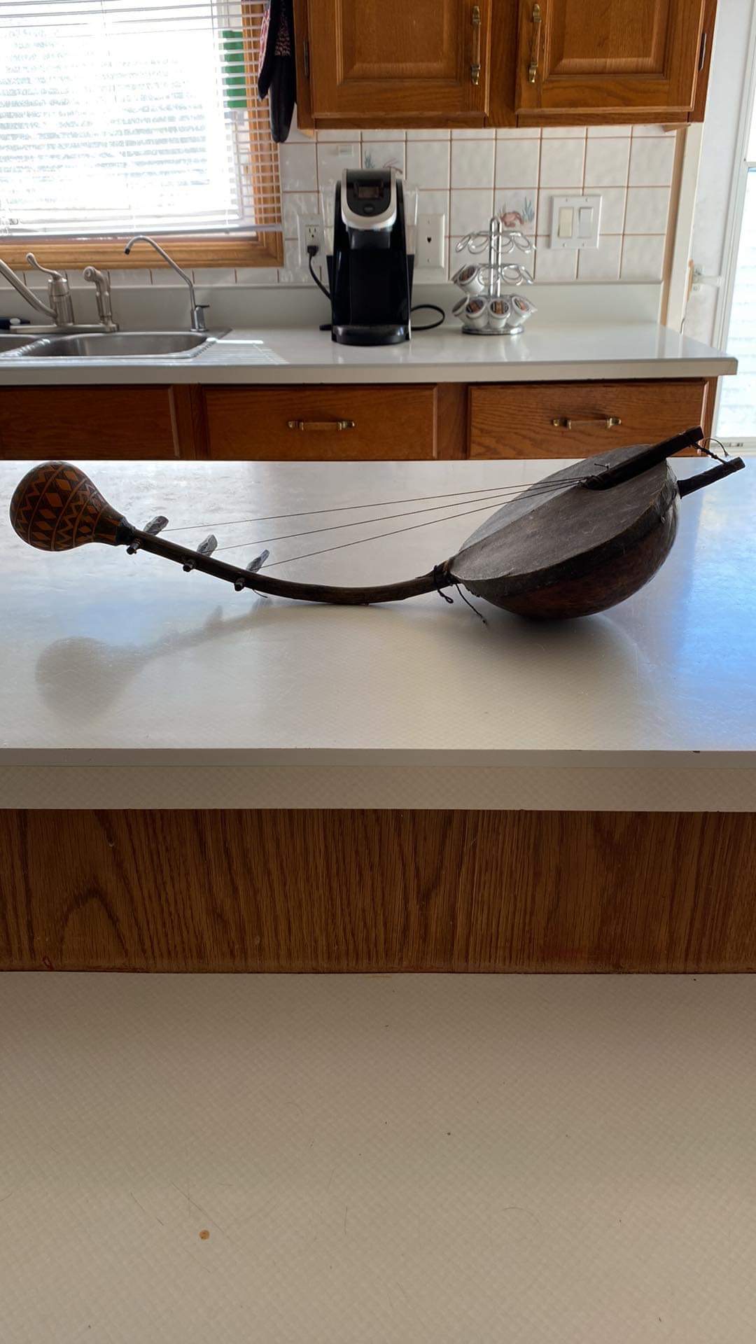 I think it is an African arched harp.  I have only found 1 very similar and it’s in the British Museum.  I just want to find out approximately how old it is. Can someone point me in right direction?