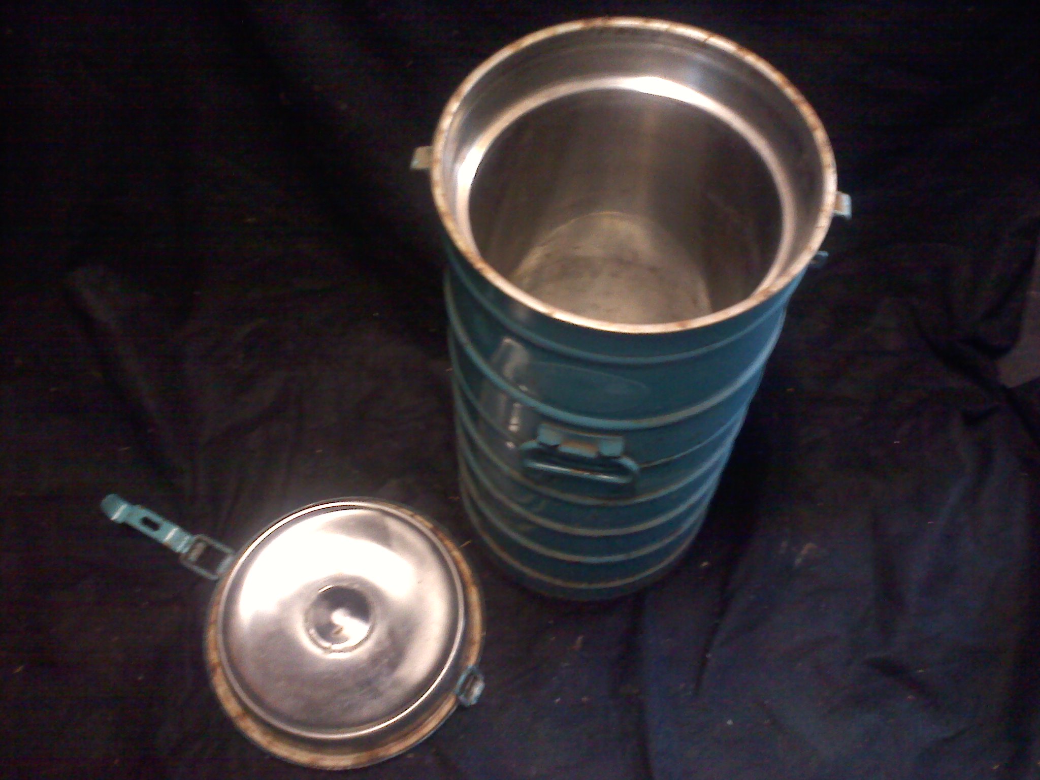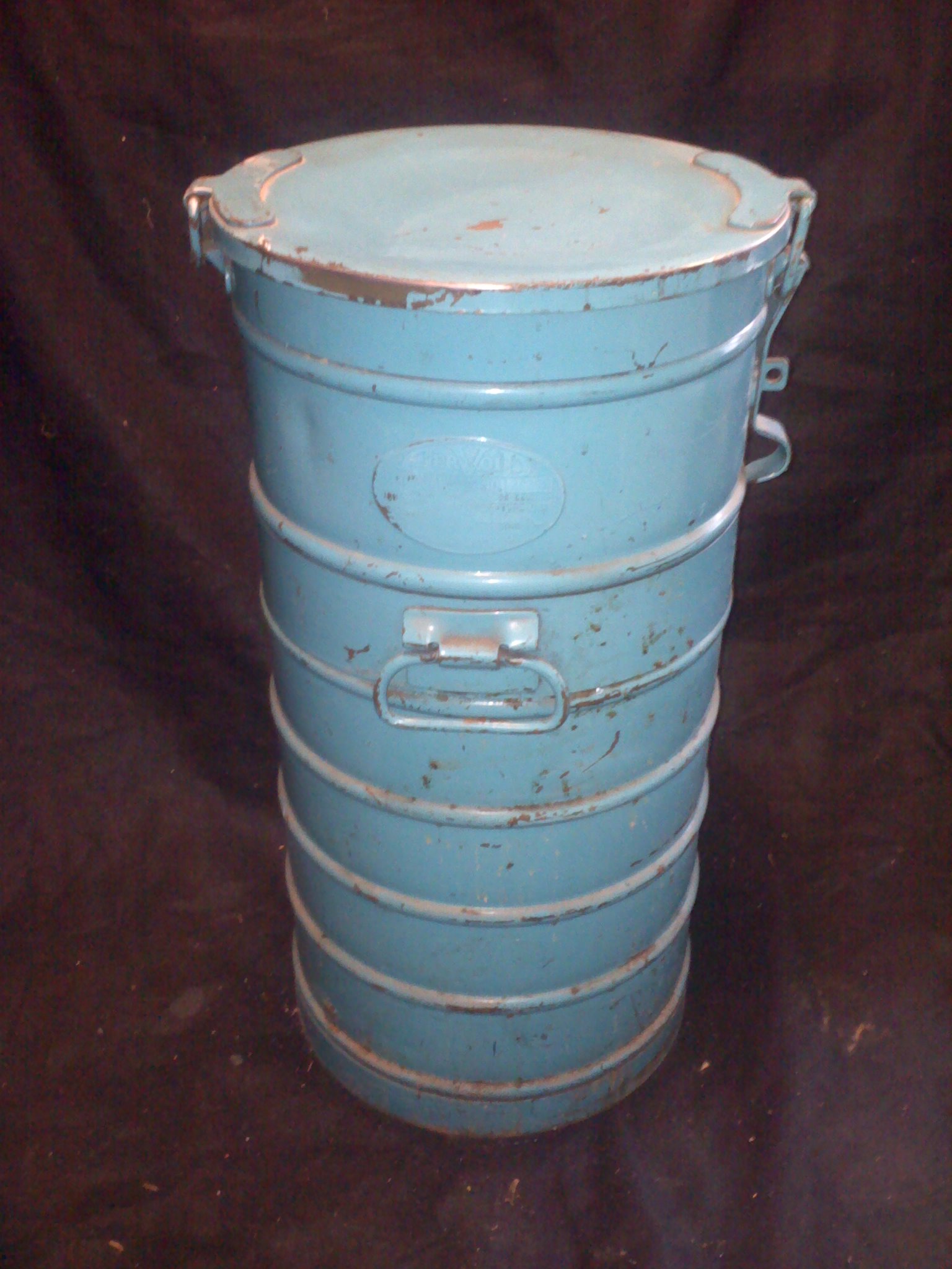 While downsizing my grandfather's collection (who recently passed away) I found an antique AerVoiD Food Carrier. It was originally plain stainless steel but was painted blue at some point. My grandfather worked for the U.S. Bureau of Mines for a few decades and traveled the world. This is a piece of equipment he took nearly everywhere he went. I've even seen this container in pictures of him in Chile, Mexico, and other parts of Central and South America from the 1940's and on. I've done quite a bit of research but can't find hardly any information on it. Through an email from the current AeRVoiD president I've learned that it's from the 1930's but no other information as the company has changed hands many times and there are no product records. I've seen similar items on Ebay for $200.00+ but my carrier seems to be much older than those. One similar item I've seen on Worthpoint said it was valued at over $1200.00. I've attached a few pictures. Thank you.