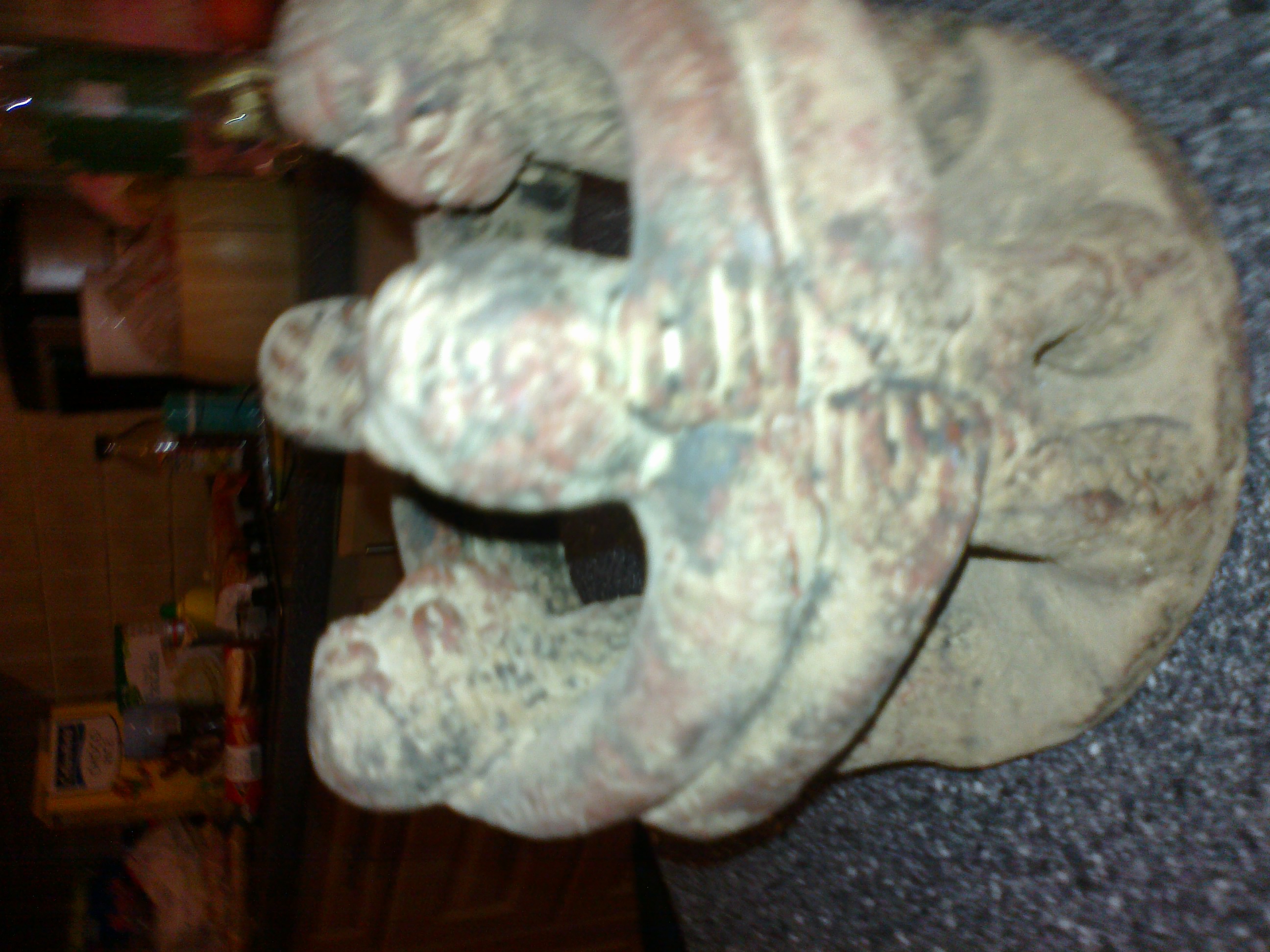 Four african looking characters holding hands in a circle. It was found buried in a garden in Irland, north of Dublin. We do not know the originon neither how long its been in the ground. It looks african to us but we are not experts. The piece appears to be made of copper / iron and are shallow inside / not very heavy. Its about 5inches tall and the diamater is about 8 inches.