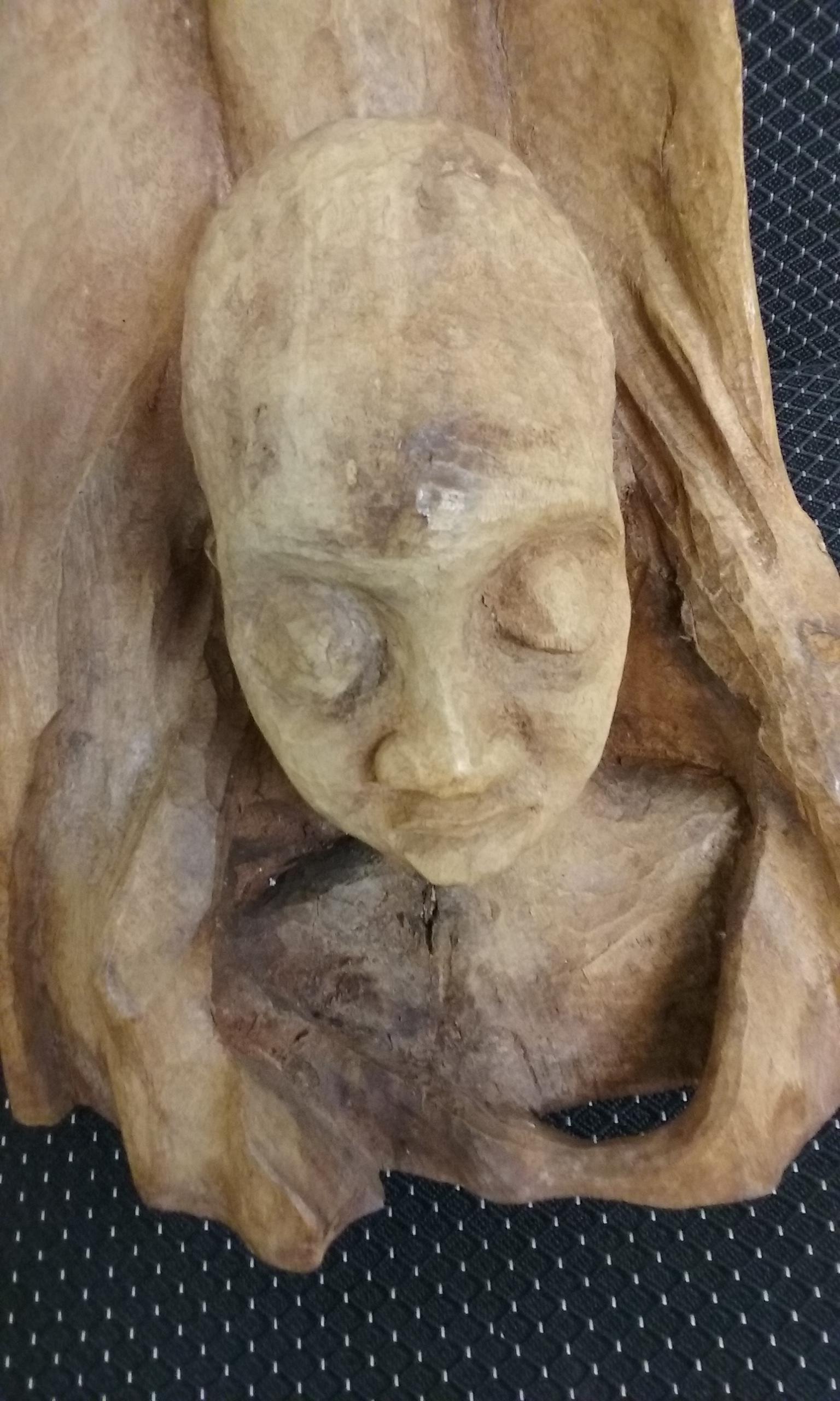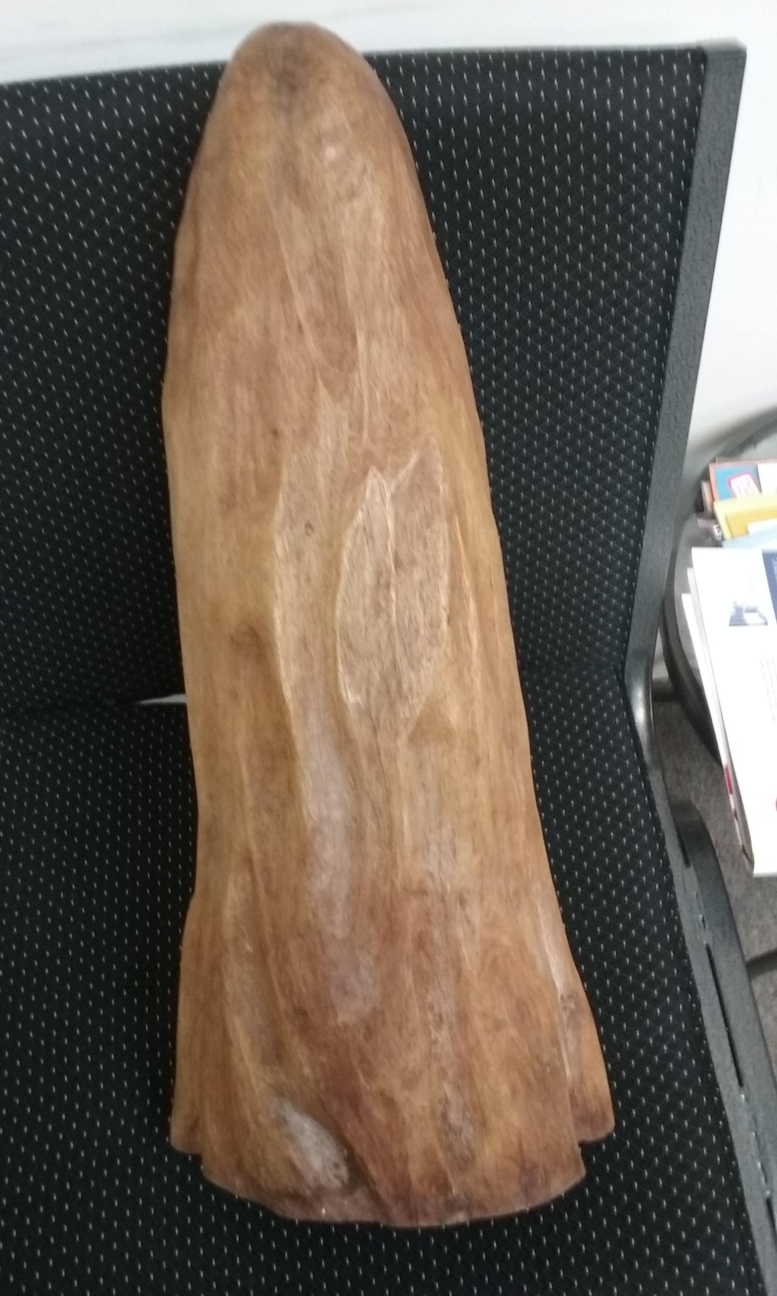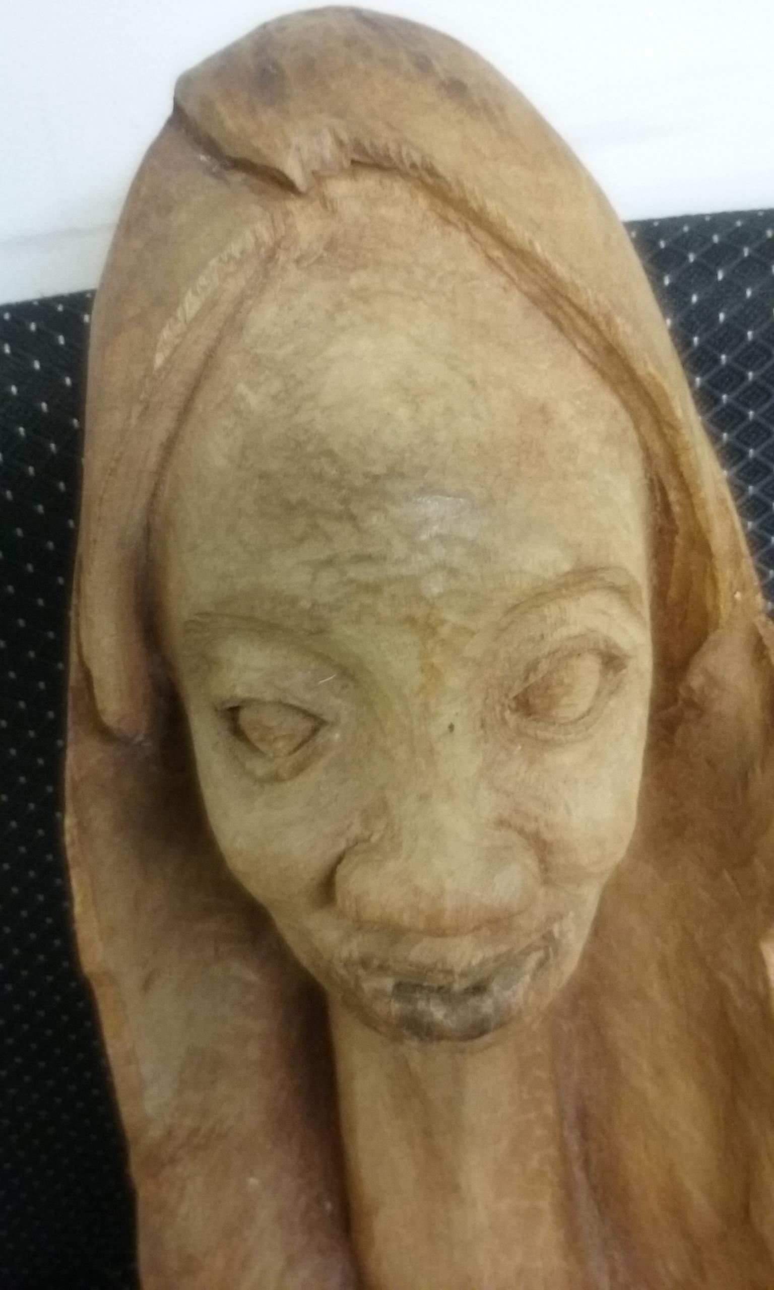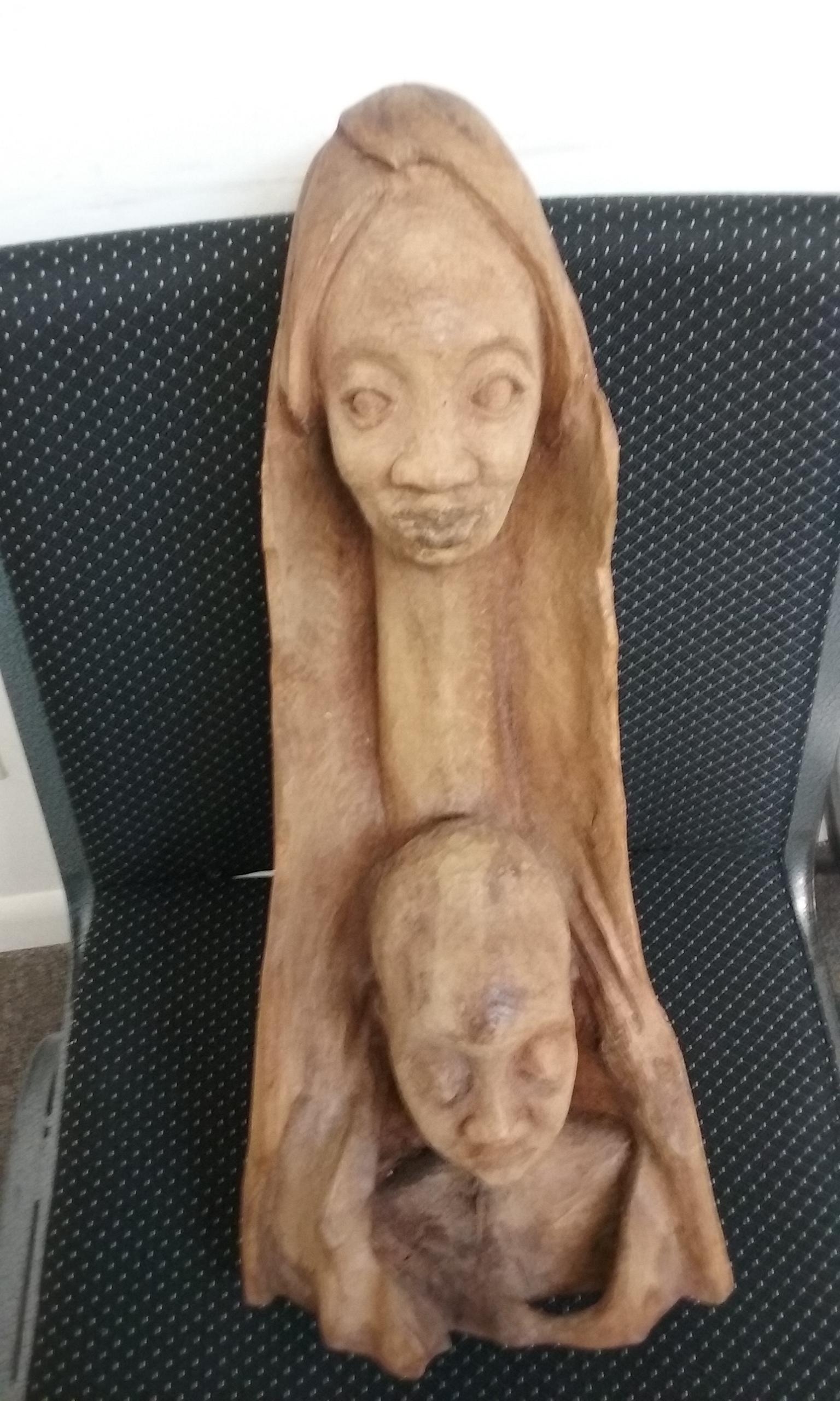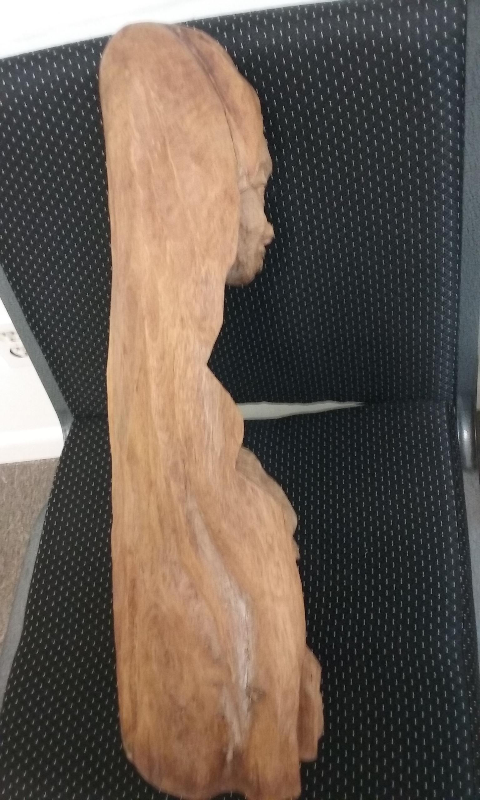 This is an African Folk Art Wood Carving. It is approximately 21 inches in height and 9 inches across at the widest part of the base. It is solid wood. It has not been retouched or cleaned in any way. It was a gift from someone who no longer appreciated it and was going to donate it to a second hand store. I could not find a signature or any markings that would hint at it's origin.