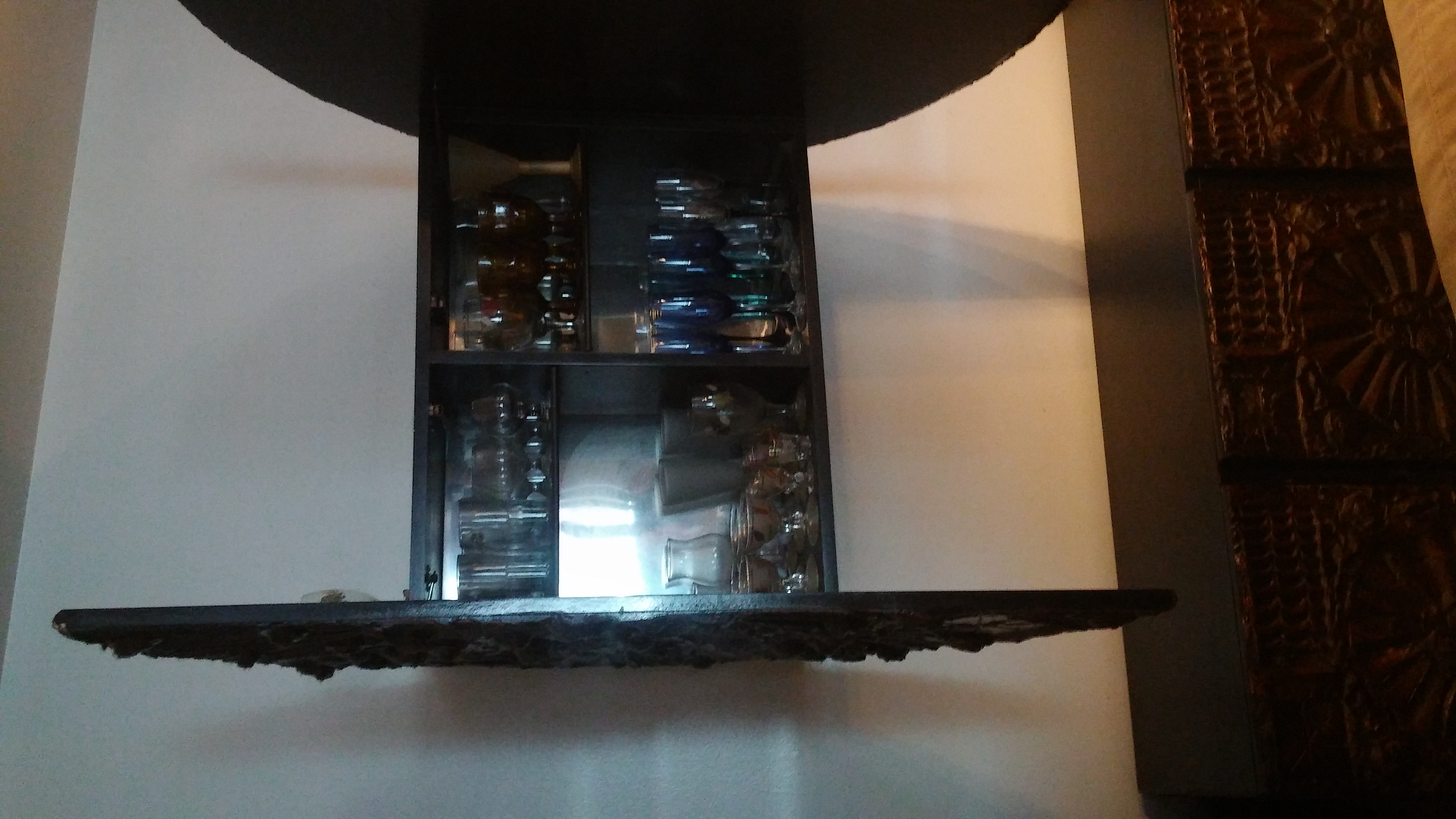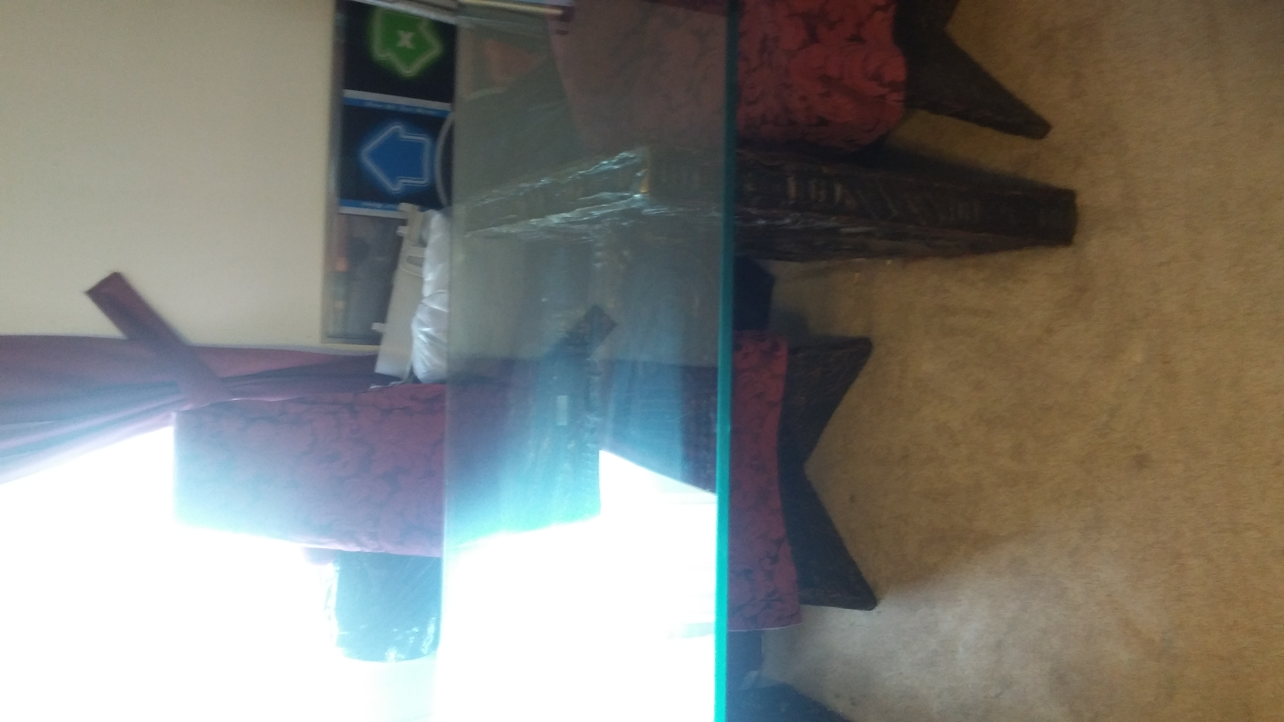 This antique furniture was imported here from Europe 50 something years ago by my father who is now decease and was passed down to me. it is african hand carved with very thick brown wood it is a four piece set, the bar sit on the wall it is round and open up to put glasses inside it has a long buffet, a four piece glass dining room table set the glass table is very heavy and thick the legs on the table are made of the same thick wood the four chairs are made of orange fur which need cleaning the chair legs are made of the same wood plus a 4 glass tier it is still in very good condition the wood still look new with a shine there is a small scratch on the dining room table and a couple small scratches on the tier if you see it you would love it I dont think there is no other here in chicago since it was imported here it is very unique