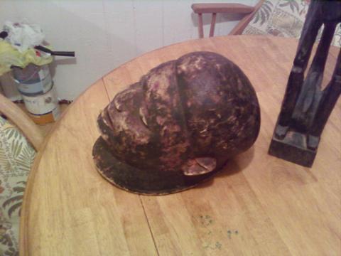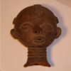 The head carved out of wood and is hallow, you can put it over half your head and face, will almost go over the whole head.