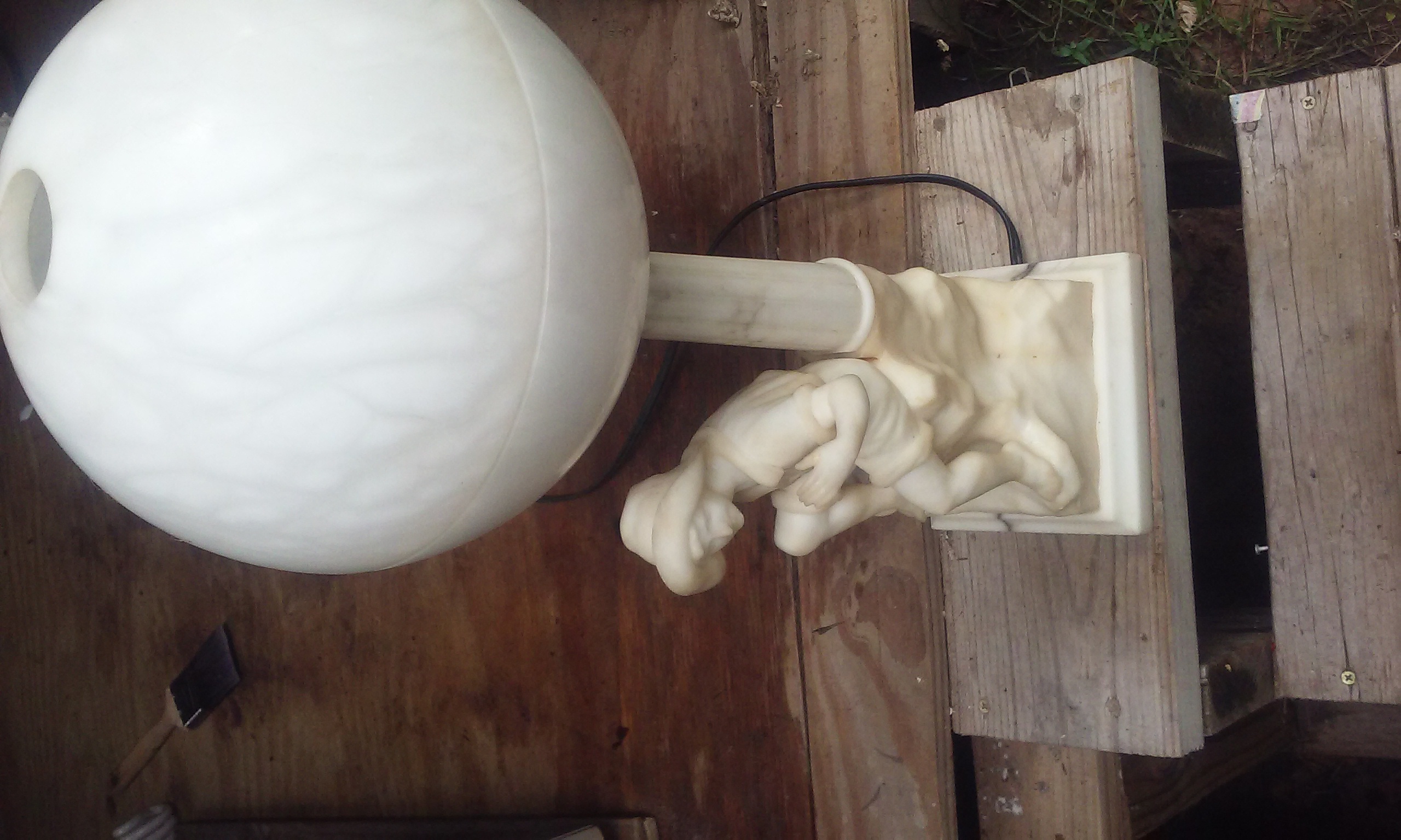 Description A boy or girl filling a waterpail. When lamp is lit it looks like a full moon glowing above . Signed Prof.G.Bessi on the back. It sits on a Alabaster stand however I dont see a signature on the pedestal. Nothing is broken the lamp has been rewired up to code . and. Do not know if it is a set or anything about it. It is my favorite piece.