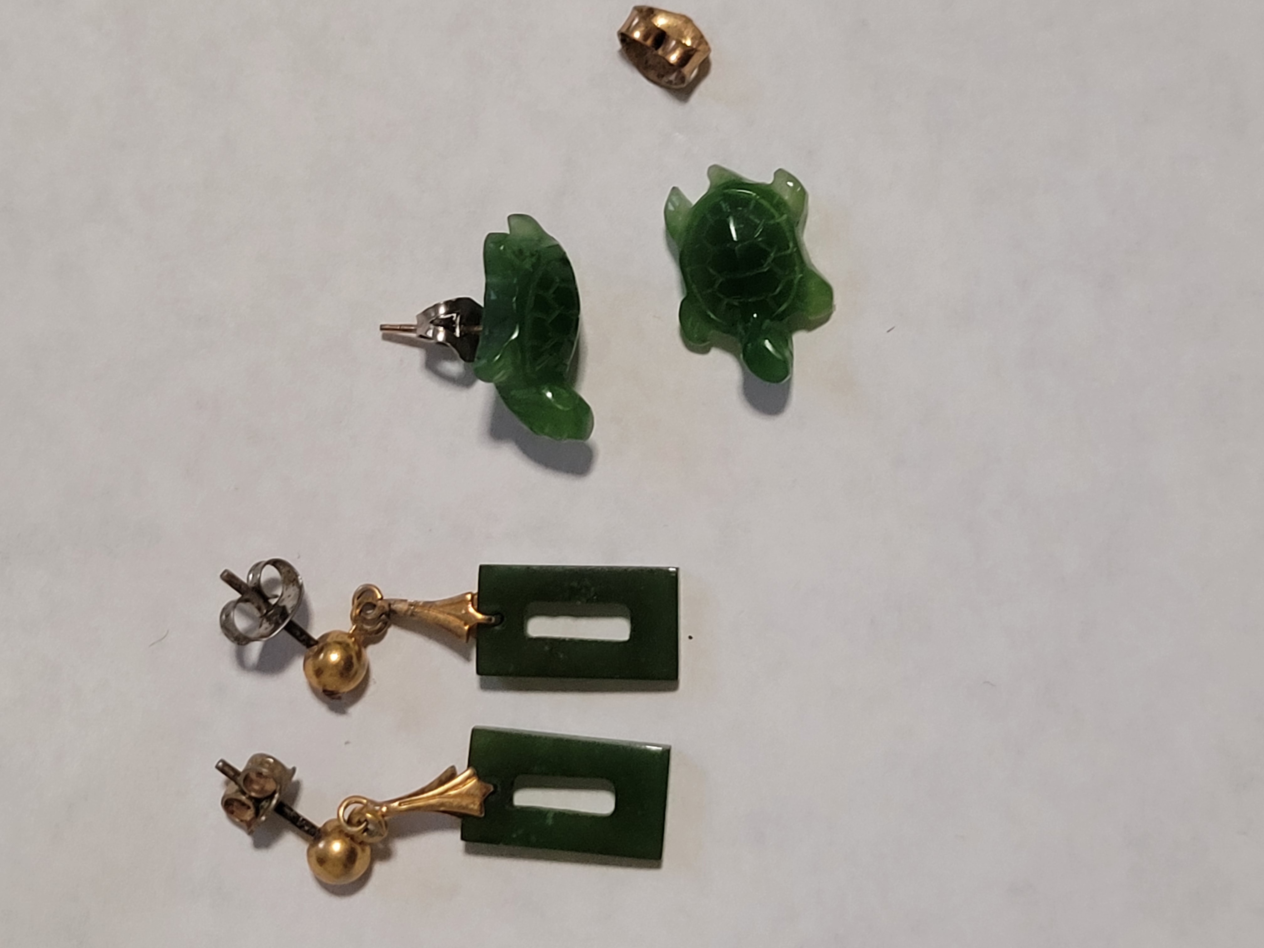 Pair of Alaska Jade earrings one dangle set and one set of turtles